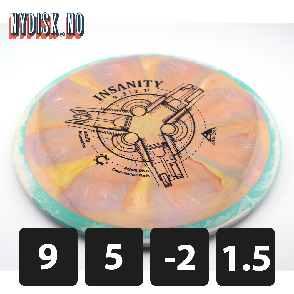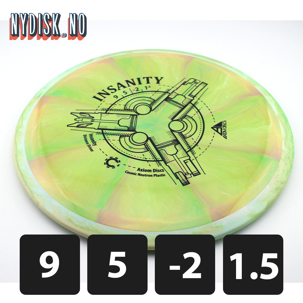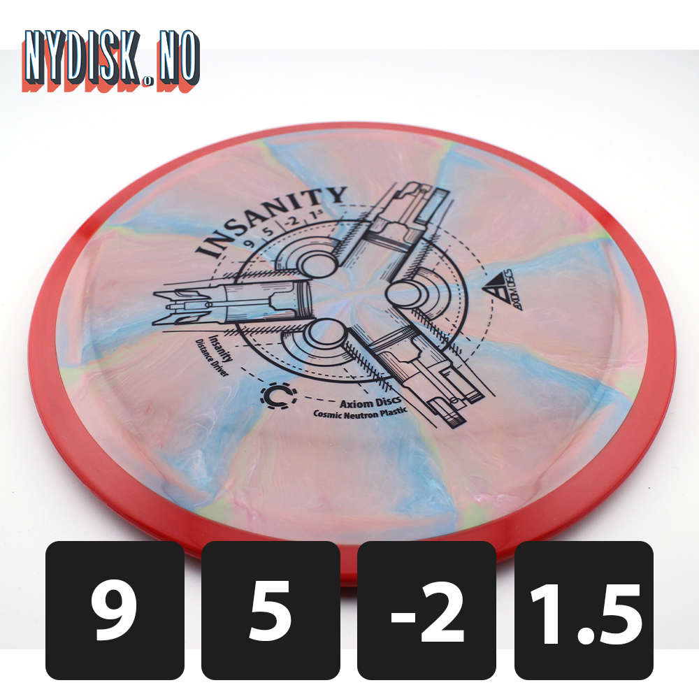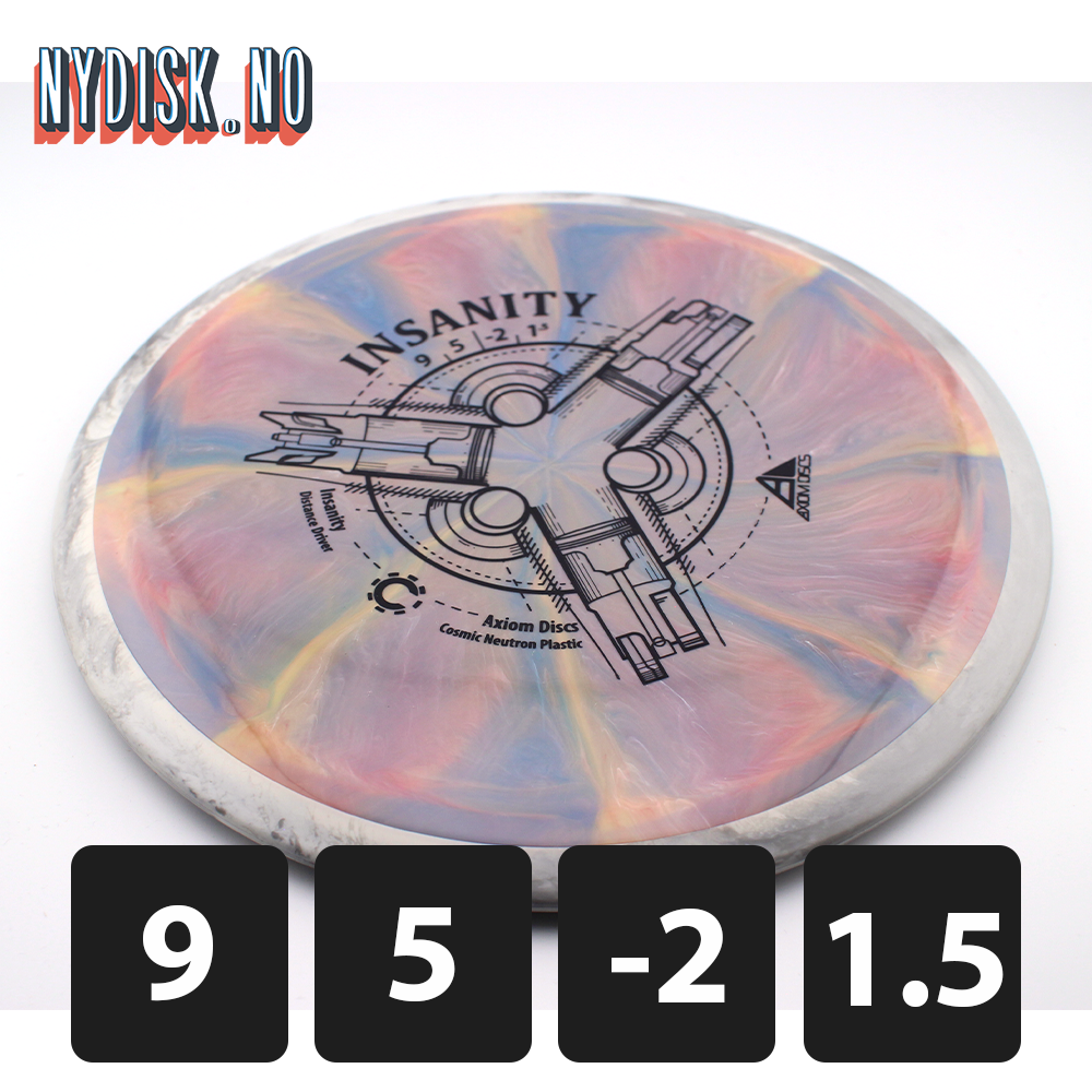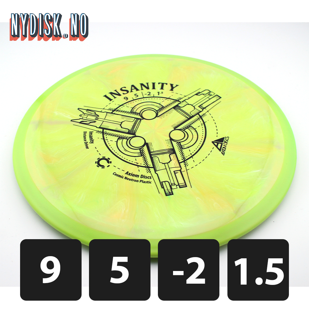The Insanity var Axiom’s første distance driver. Disken oppleves som noe mindre stabil enn den superpopulære disken MVP Inertia, den flyr noe lenger enn Crave og vil tilby spillere med medium kastehastighet en helt rett flyvebane. Kastes disken hardt vil den gi en lett understabil flight.