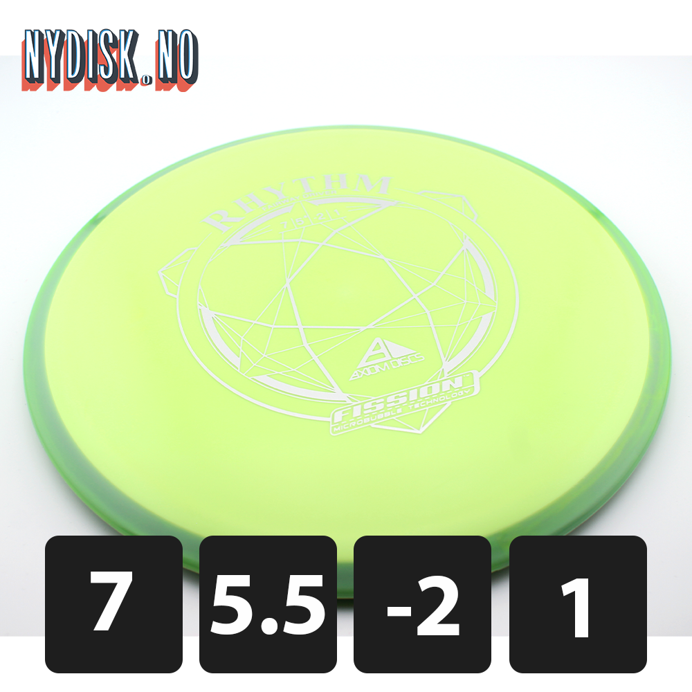 Rhythm er en fantastisk understabil fairway driver fra Axiom. Den er designet for å være enten en flott nybegynnerdriver eller en disk du kan forme linjer med som mer erfaren. Kastet med lav hastighet er en rett som en laser, men gradvis som du øker hastigheten vil du få en mer og mer understabil karakteristikk på flighten. Dette er også en god disk å øve på dine første hyzerflips med.