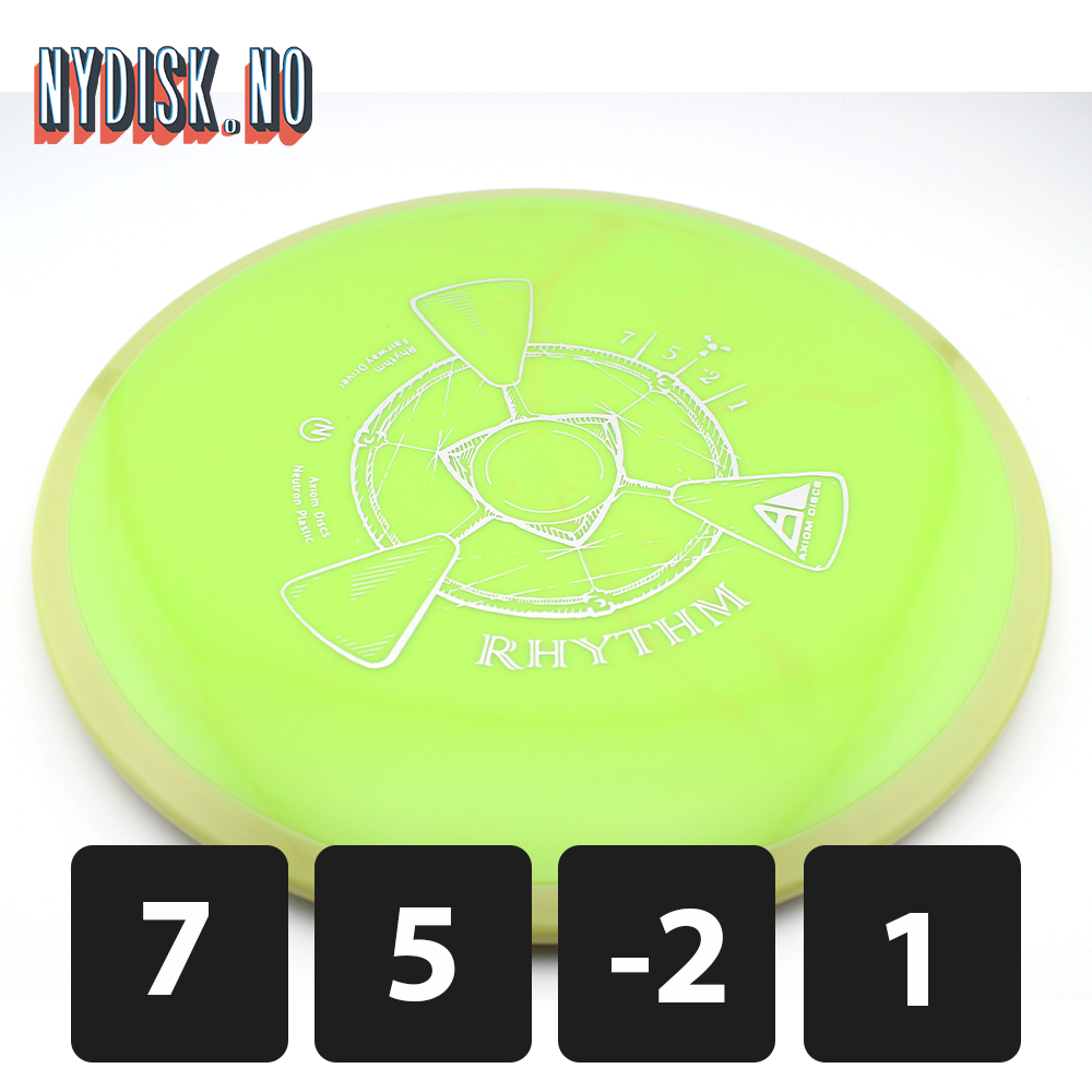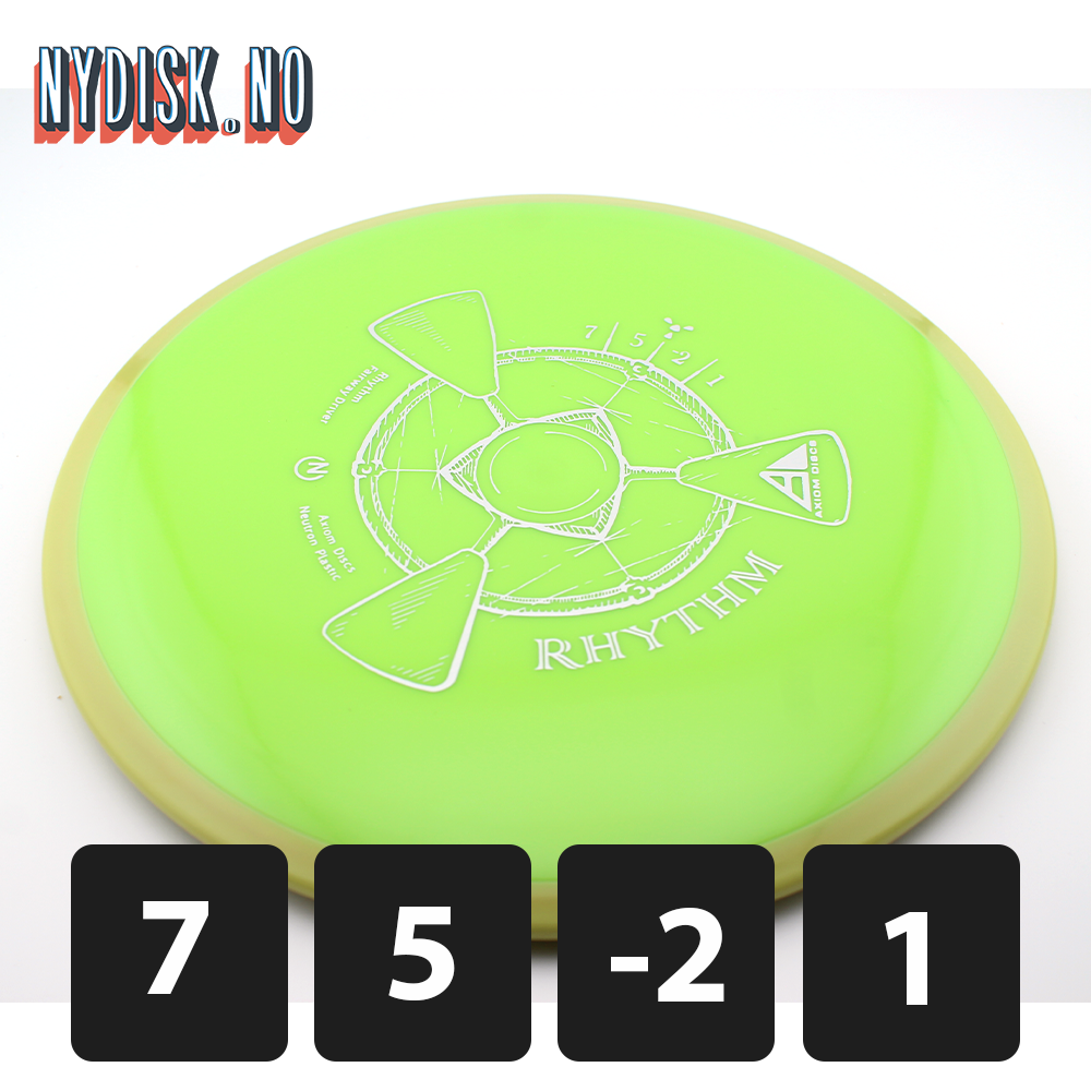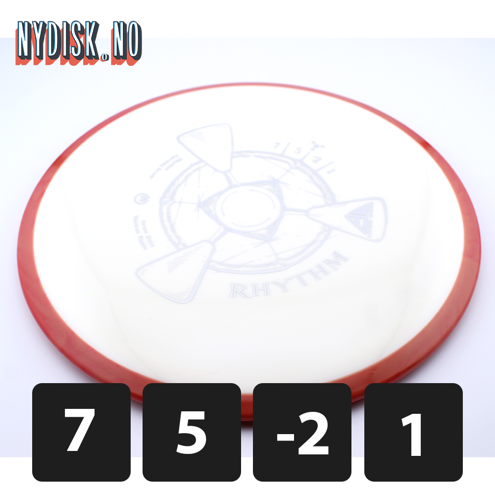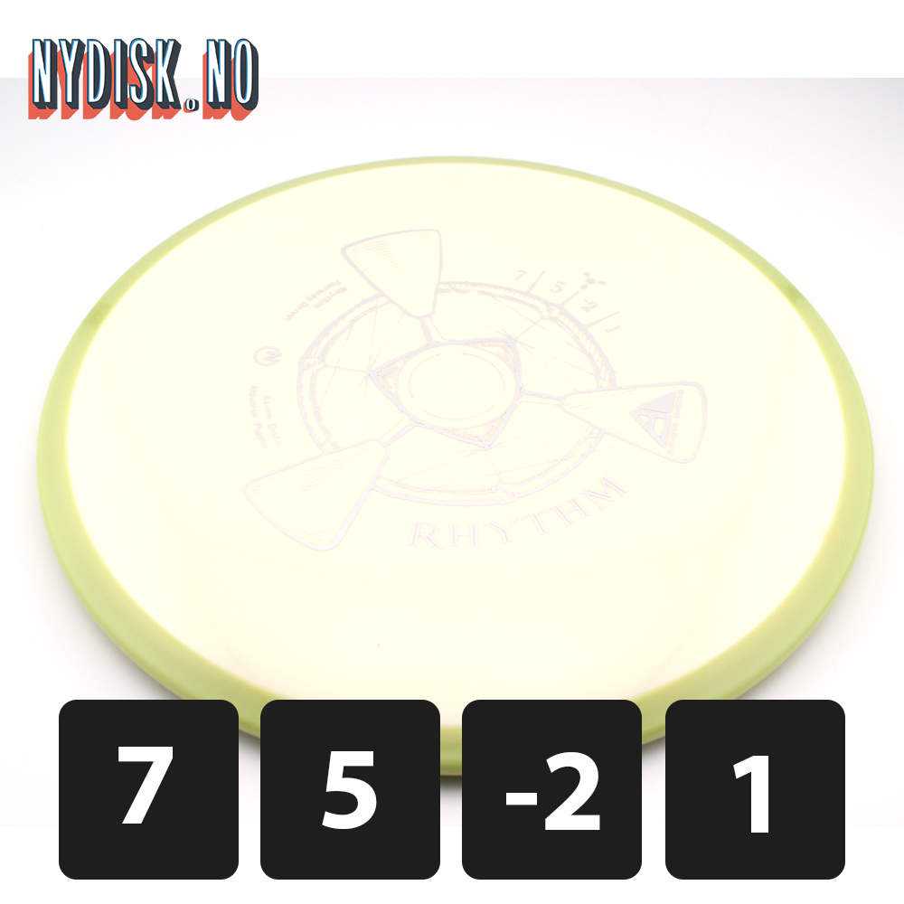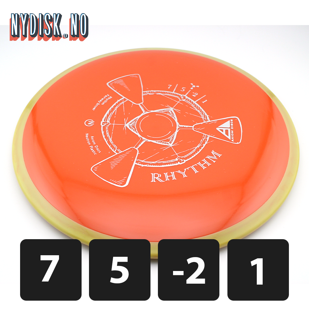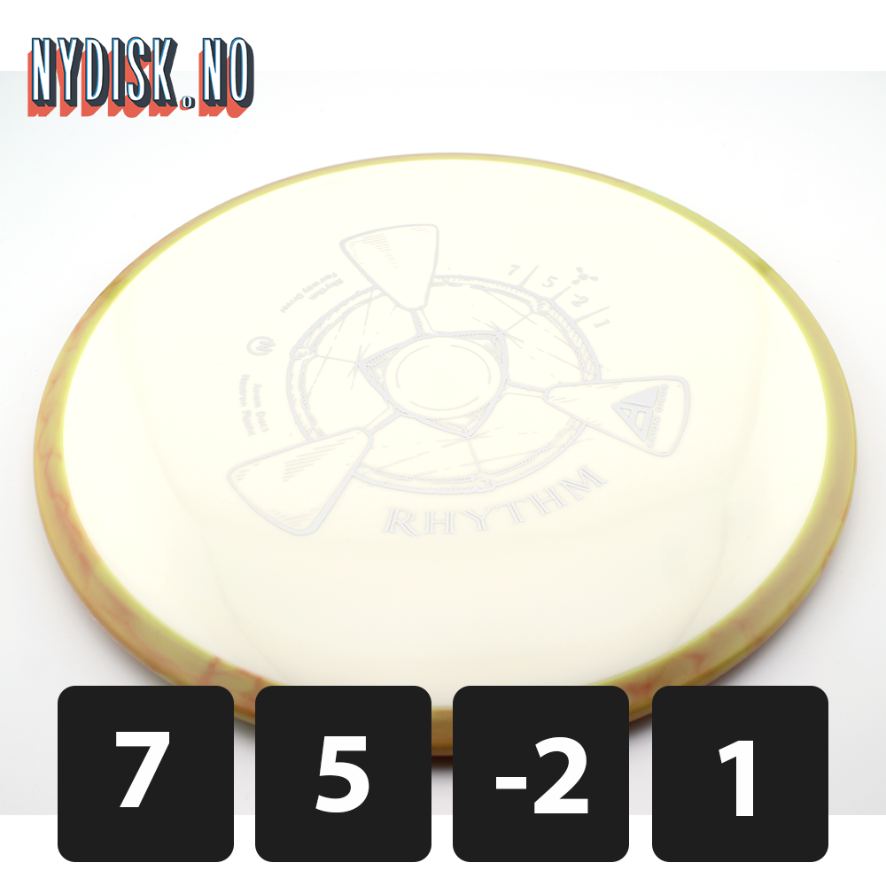 Rhythm er en fantastisk understabil fairway driver fra Axiom. Den er designet for å være enten en flott nybegynnerdriver eller en disk du kan forme linjer med som mer erfaren. Kastet med lav hastighet er en rett som en laser, men gradvis som du øker hastigheten vil du få en mer og mer understabil karakteristikk på flighten. Dette er også en god disk å øve på dine første hyzerflips med.