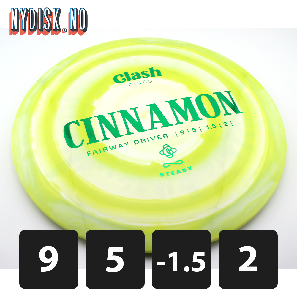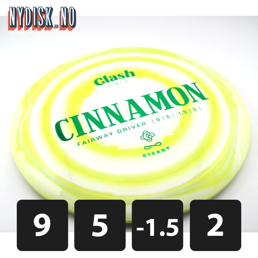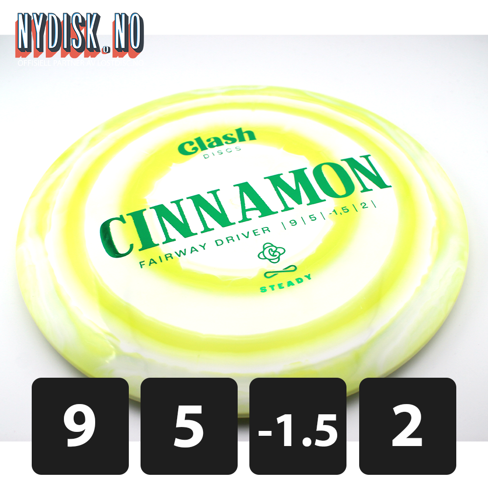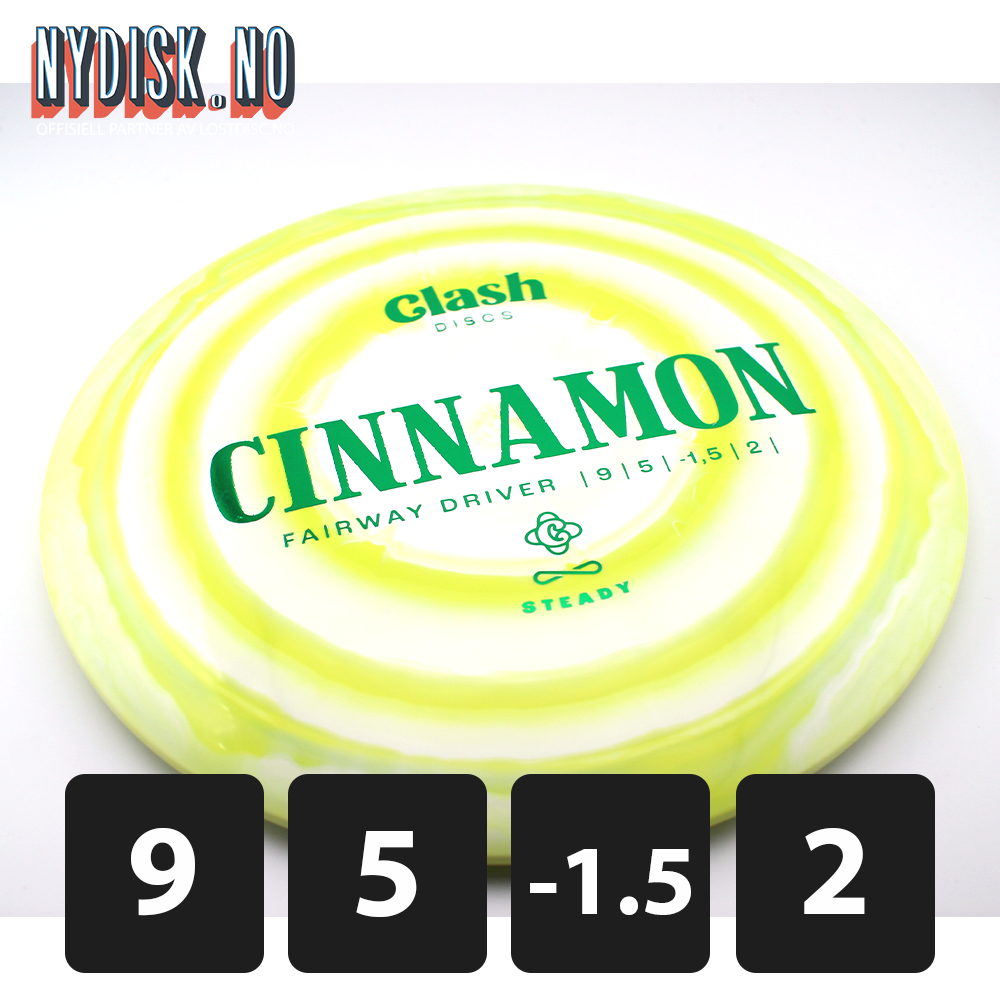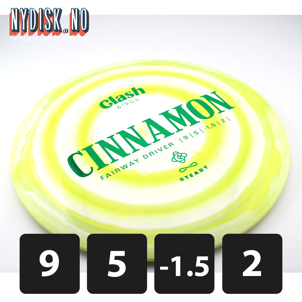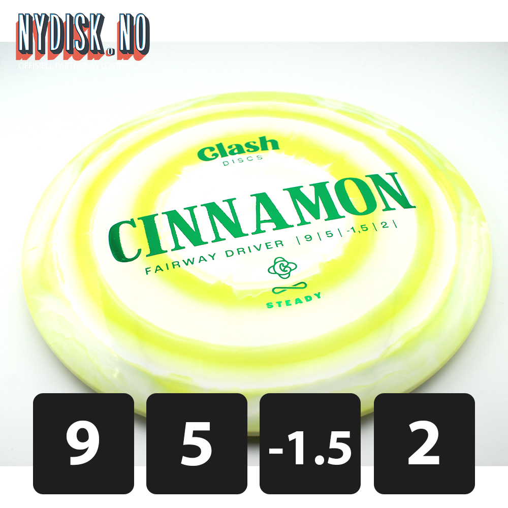 Clash Discs Steady Ring Cinnamon er en lett gjenkjennbar, rett 9-speed fairway driver. I STEADY vil denne disken være en stabil/rett fairway driver, mens i STEADY RING vil du oppleve at disken er noe mer understabil, men samtidig med et større potensiale for distanse. Om du normalt kaster 80-90 meter, kan dette være disken du setter ny distanserekord med.