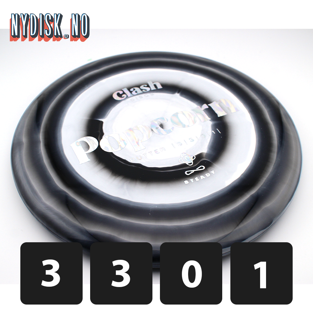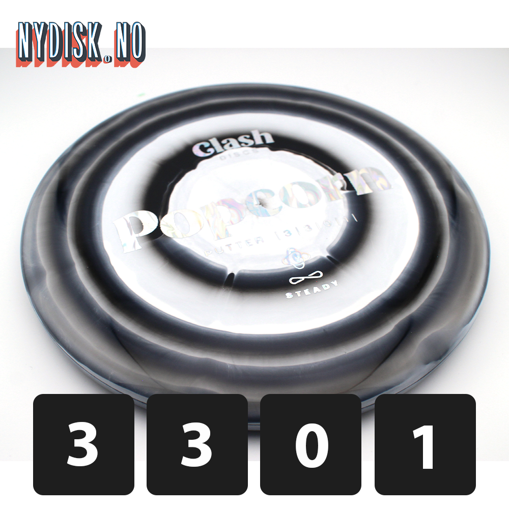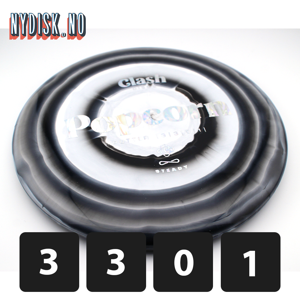 Clash Discs Steady Ring Popcorn er en rettflyvende kasteputter. Om du eier eller har prøvd en STEADY Popcorn før vil du oppleve denne som mer understabil. Den har noe mer dome enn STEADY og flyr likere en Pure enn originalen.