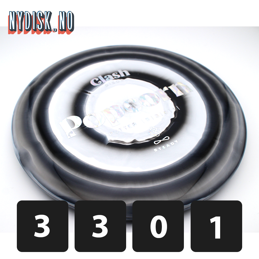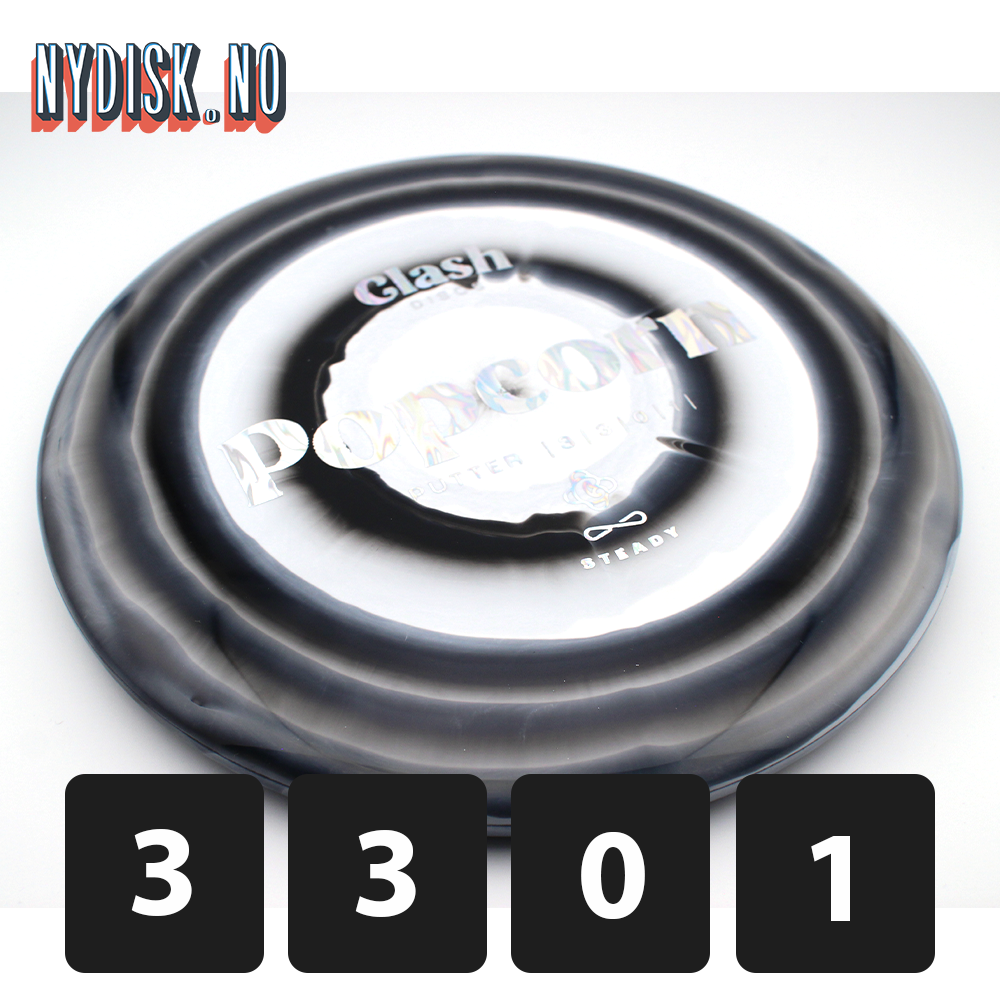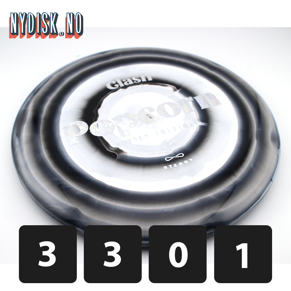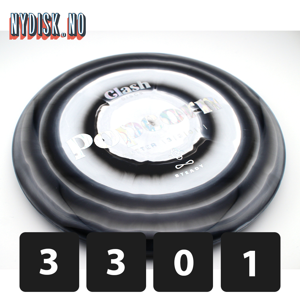 Clash Discs Steady Ring Popcorn er en rettflyvende kasteputter. Om du eier eller har prøvd en STEADY Popcorn før vil du oppleve denne som mer understabil. Den har noe mer dome enn STEADY og flyr likere en Pure enn originalen.