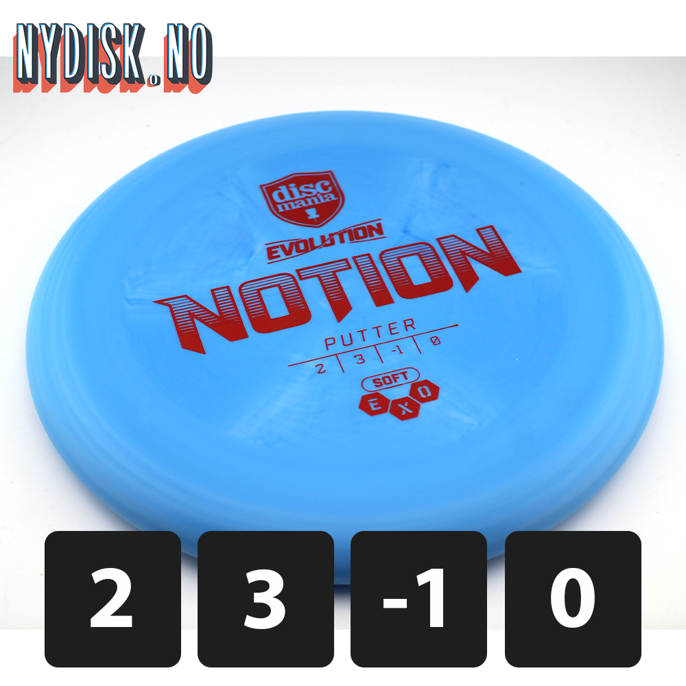 Discmania EXO Soft Notion er en pålitelig og lettkastet putter som gir utmerket presisjon på både korte og mellomlange kast. Laget i EXO Soft plast, gir denne modellen et komfortabelt grep og en myk følelse ved håndtering. Notion har en rett flight med minimal fade, noe som gjør den ideell for putting og innspill, hvilket gjør den perfekt for spillere som ønsker en pålitelig og lettkastet disk.