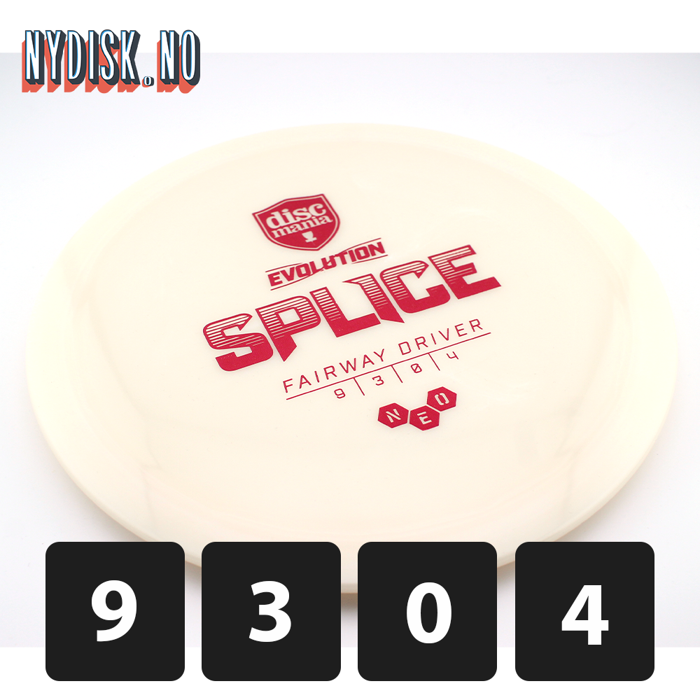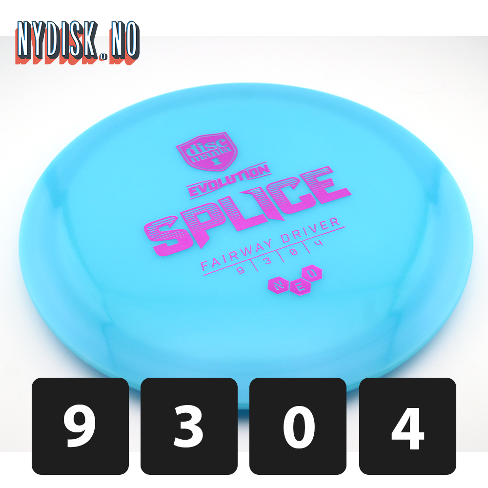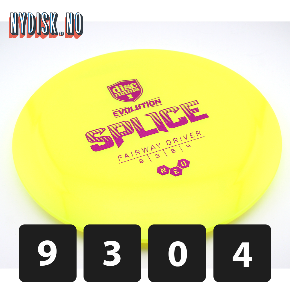 Discmania NEO Splice er skapt for de øyeblikkene der du er helt avhengig av fade, uansett vær og vind. Splice kombinerer kontroll og overstabilitet samtidig som den er svært nøyaktig og har lav glide. Den flate profilen gir godt grep både for backhand og forehand kast, samt en rekke forskjellige grep.