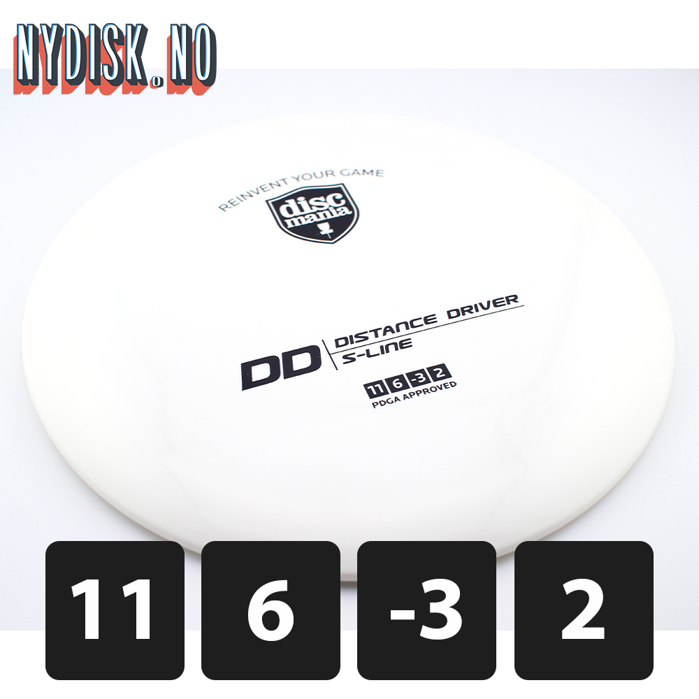 Discmania S-Line DD er en stabil til understabil distance driver i slitesterk plast med godt grep. Med 11 i speed passer grepet på denne disken til de fleste spillere og de understabile egenskapene vil for mange gi den perfekte hyzer-flip disken.