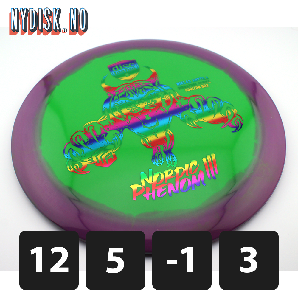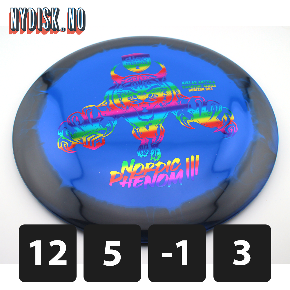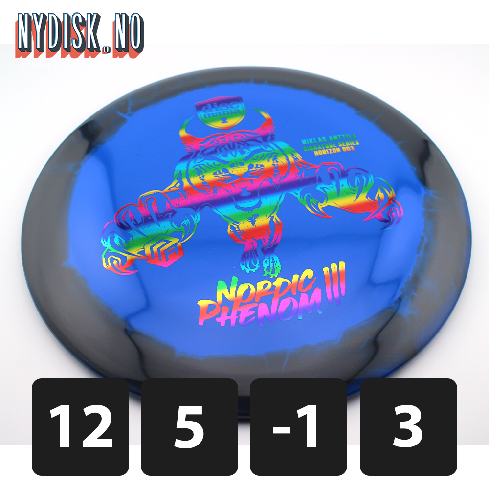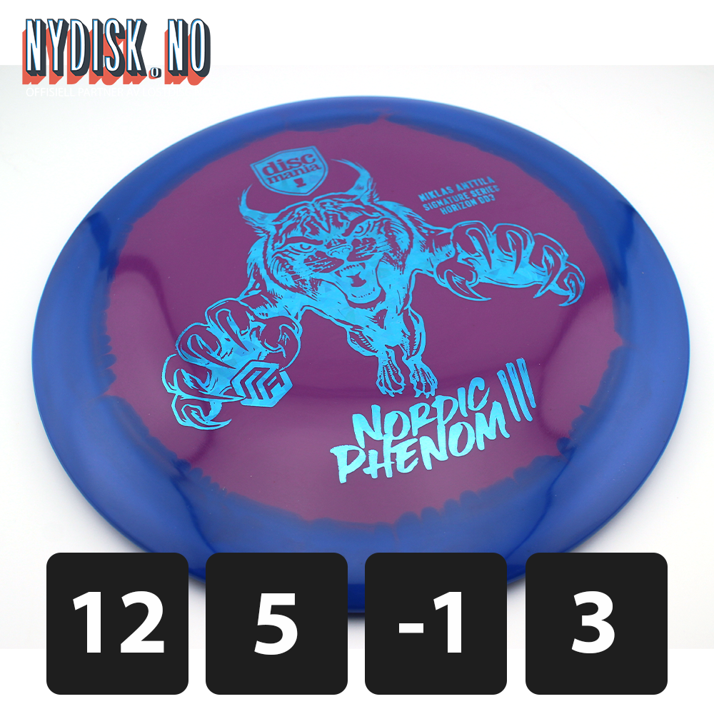 Nordic Phenom returnerer i den fargerike og grippy plasten Horizon S-Line som Niklas Anttila sin første Tour Series disk i 2024. Årets modell er den velkjente modellen, DD3 - en av de aller mest populære diskene både på tour og ellers.