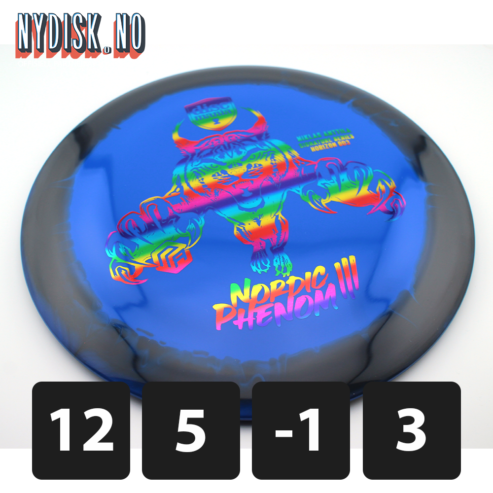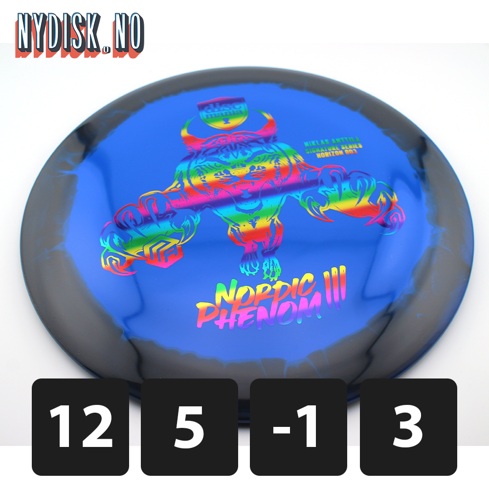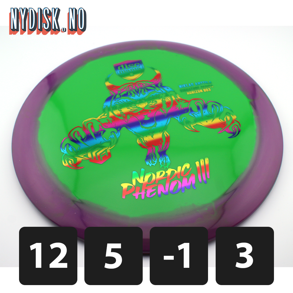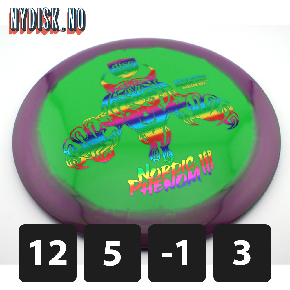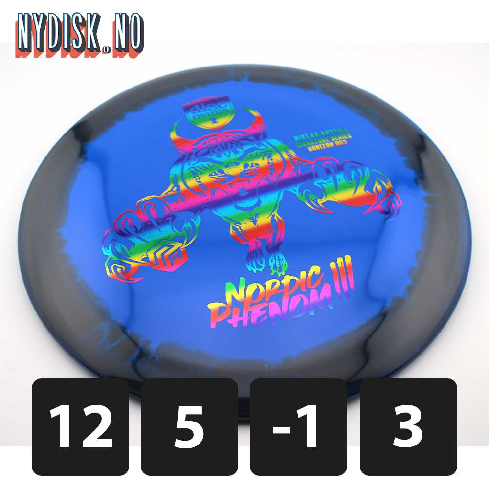 Nordic Phenom returnerer i den fargerike og grippy plasten Horizon S-Line som Niklas Anttila sin første Tour Series disk i 2024. Årets modell er den velkjente modellen, DD3 - en av de aller mest populære diskene både på tour og ellers.