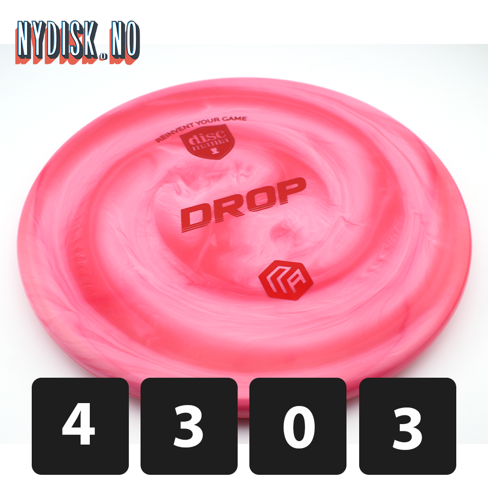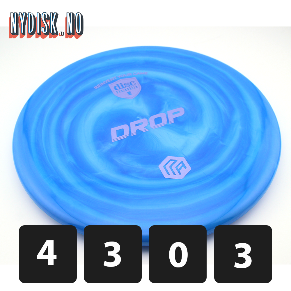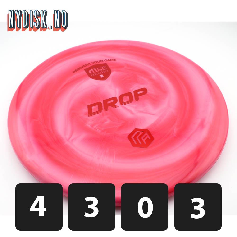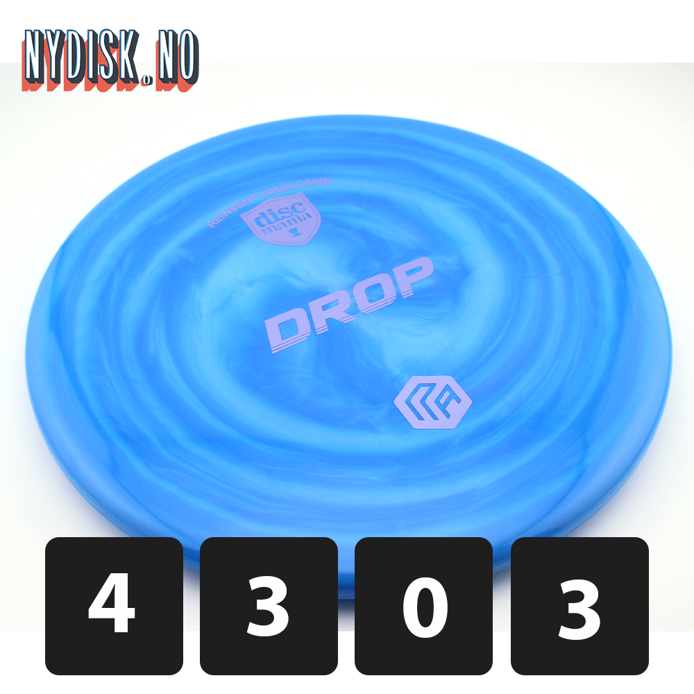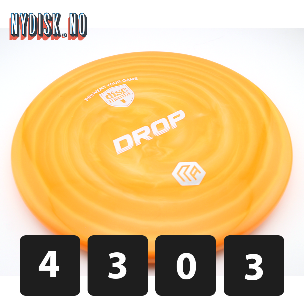 Designet til å være grunnere og mer avrundet enn en Tactic / P4, er Drop en disc du kan stole på for alle shot shaping-behov når du ønsker kontrollert lengde og jevn overstabilitet. Kast hardt på innspill som krever mye avslutning, eller kast mykere på kortere innspill og ha tillit til at du havner tett på målet ditt.