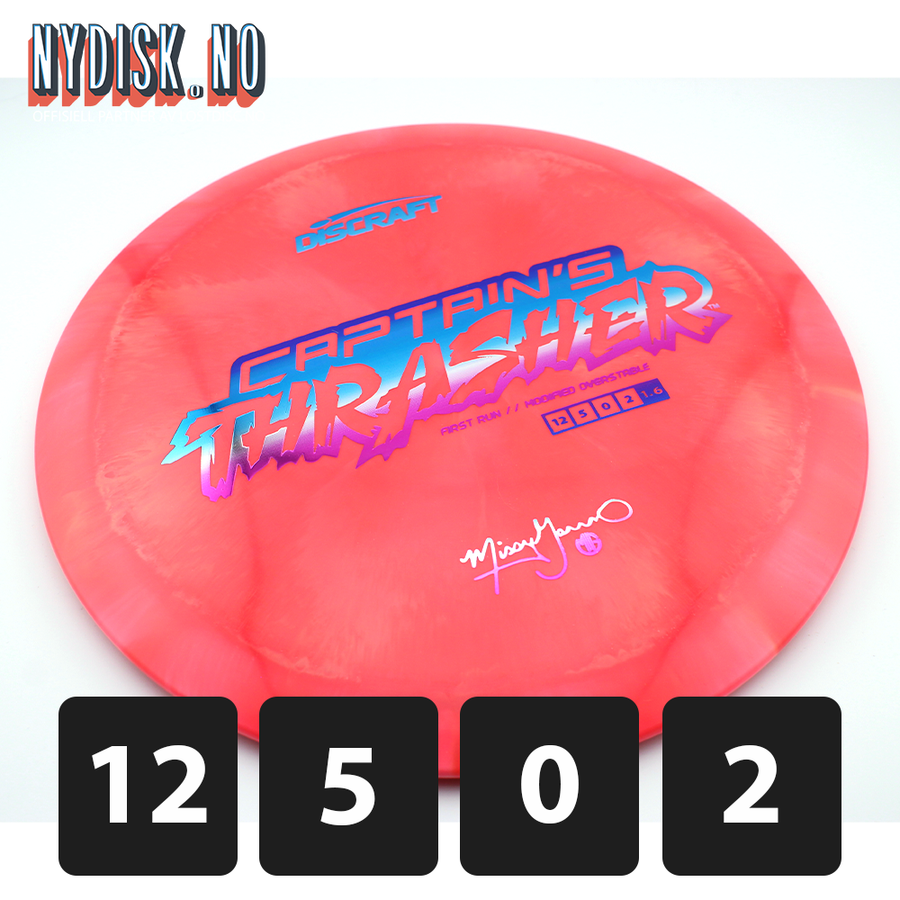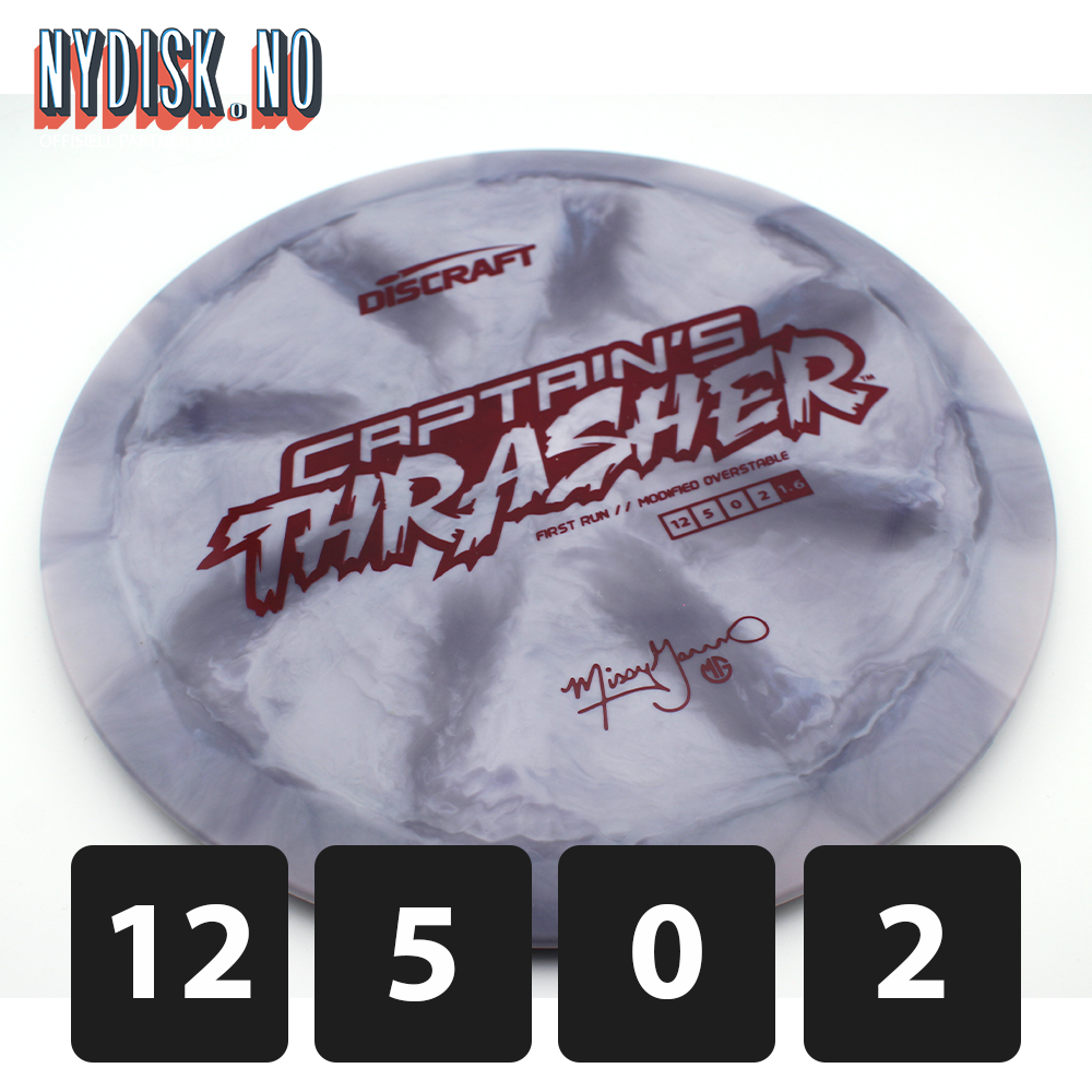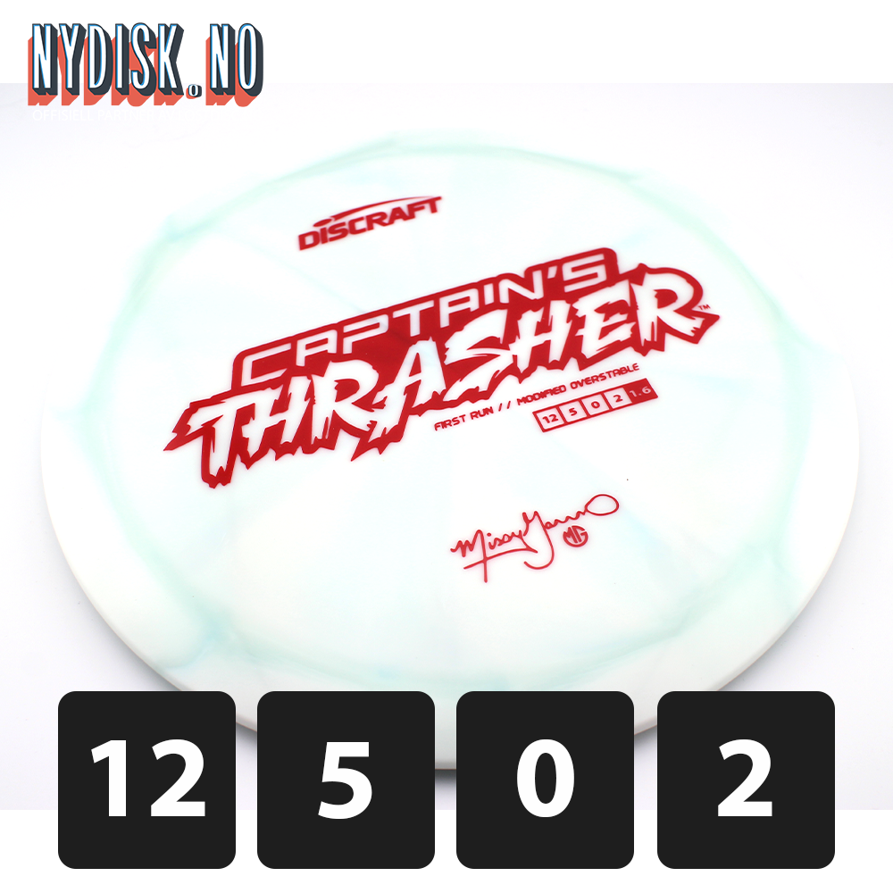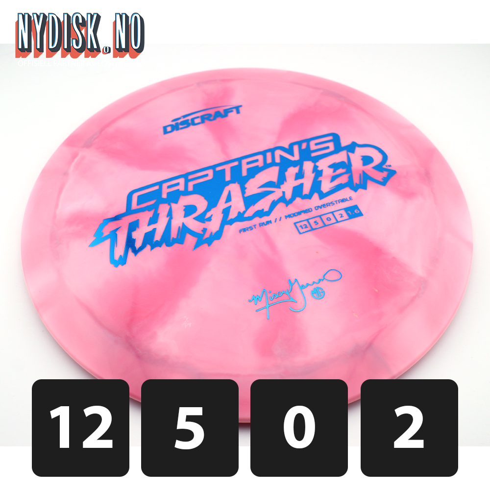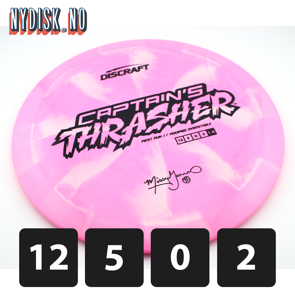 ESP Captain's Thrasher fra Discraft er en mer stabil variant av Thrasher og omtales ofte som en Vulture med høyere hastighet. Disken tilbyr rikelig med glide for kraftige kastearmer og en distinkt fade mot slutten av flight. For spillere med rundt 100 meter i distanse, vil denne disken være ypperlig til flex eller som en overstabil distance-driver.