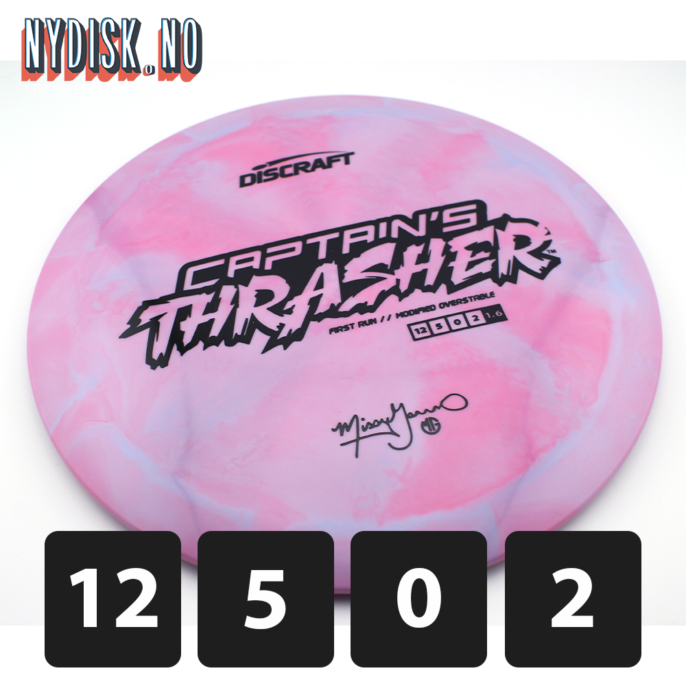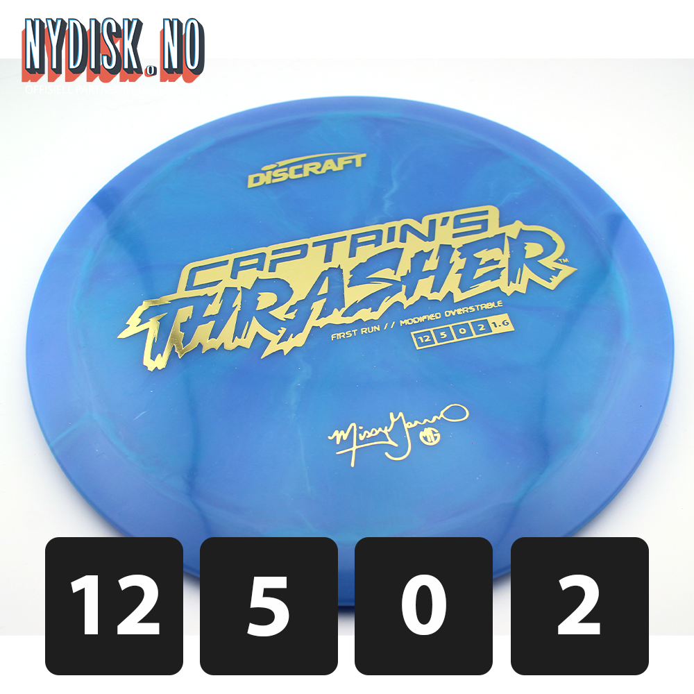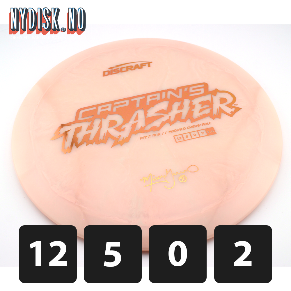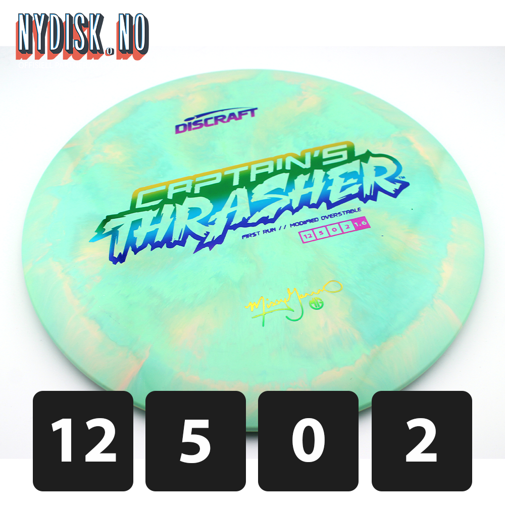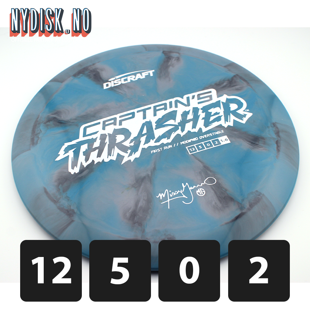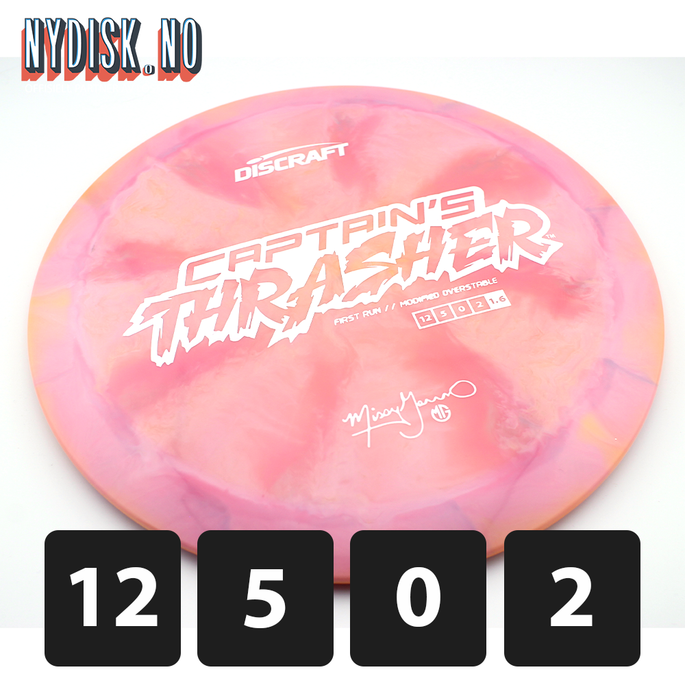ESP Captain's Thrasher fra Discraft er en mer stabil variant av Thrasher og omtales ofte som en Vulture med høyere hastighet. Disken tilbyr rikelig med glide for kraftige kastearmer og en distinkt fade mot slutten av flight. For spillere med rundt 100 meter i distanse, vil denne disken være ypperlig til flex eller som en overstabil distance-driver.