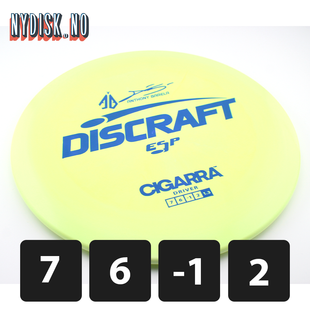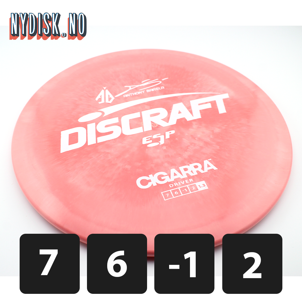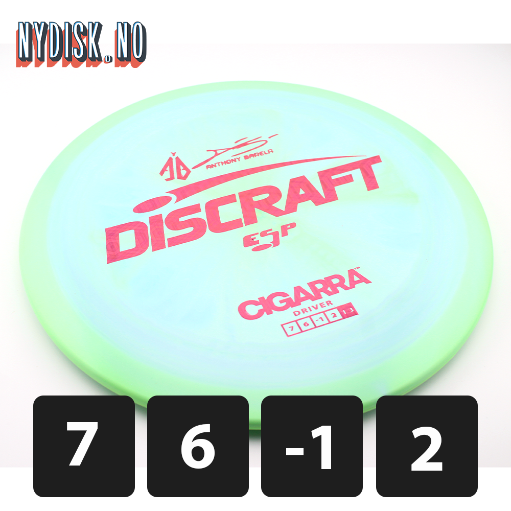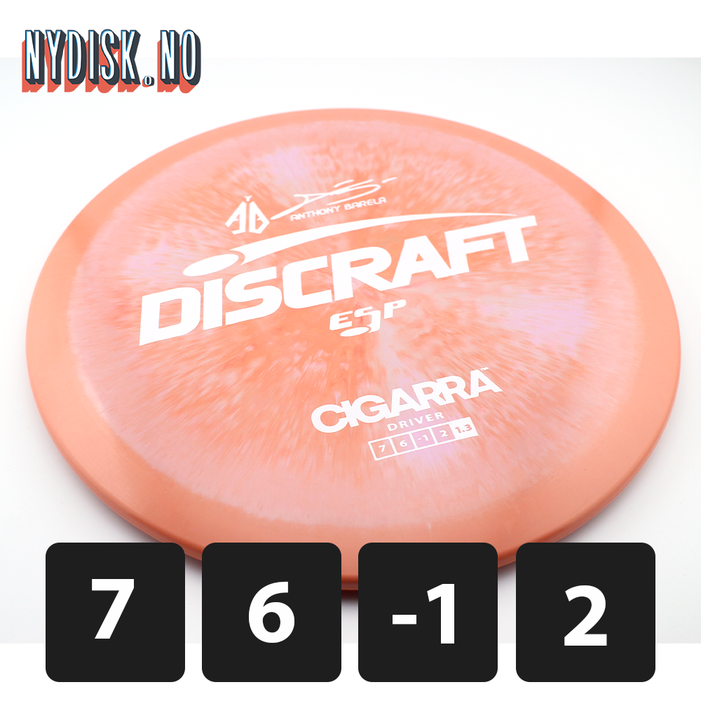 Etter suksessen med First Run og Stock Z Line-utgivelsen er Anthony Barela Cigarra nå tilgjengelig i Discrafts signatur ESP-plastblanding – som gir den samme pålitelige flighten med ekstra grep og livlige swirls. Cigarra har raskt blitt en favoritt blant både fans og touring-proffer på grunn av sin allsidighet og brukervennlighet på tvers av ferdighetsnivåer.