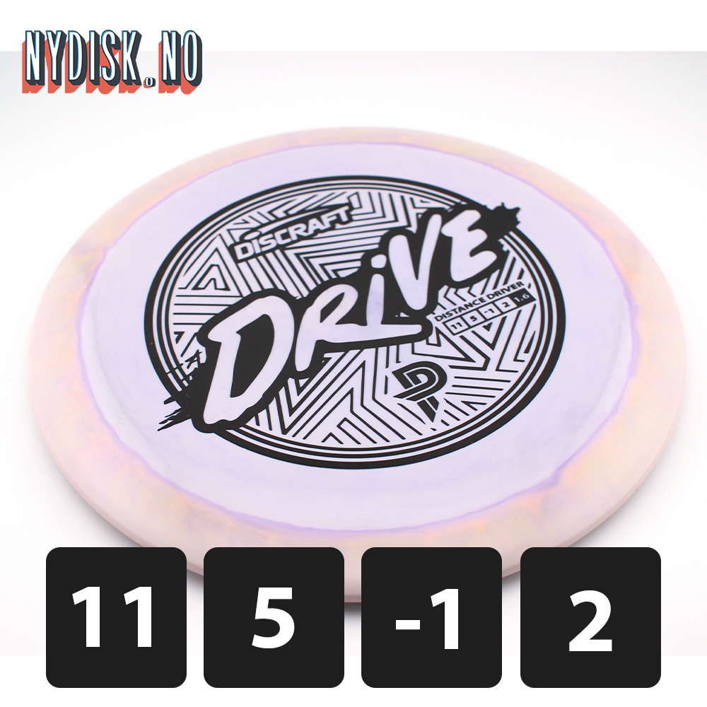 ESP Drive fra Discraft er en distance driver i Paige Pierce-serien. Med en perfekt balanse mellom presisjon og glide, plasserer den seg midt mellom Surge SS og Zeus. Med en hastighet på 11 tilbyr disken både kontroll og presisjon og vil derfor være en fantastisk distance driver for veldig mange spillere.
