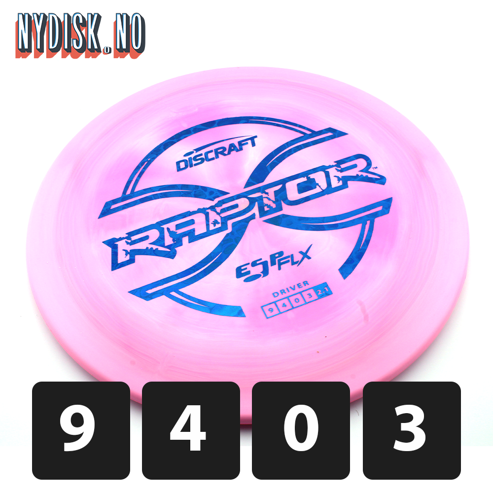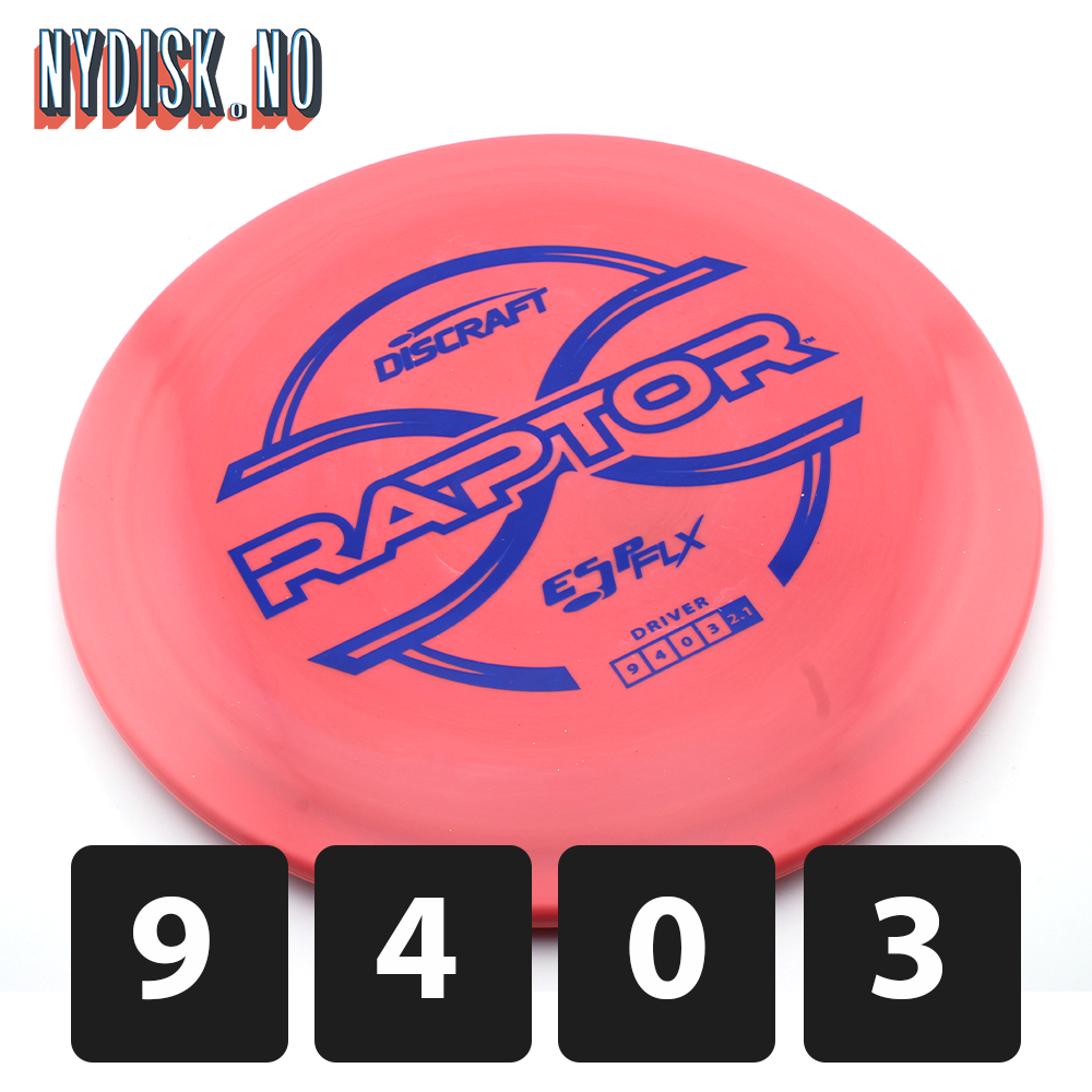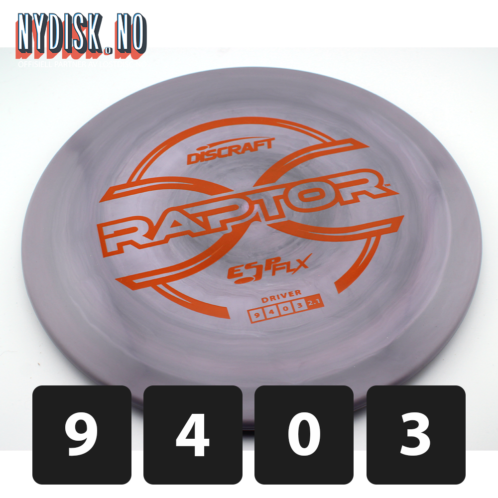 Discraft ESP FLX Raptor er en overstabil fairway driver fra Discraft. Disken er svært allsidig og kan brukes til både backhand flex og hyzerkast samtidig som den er en av de mest populære diskene på markedet til forehandkast. Raptor er kjent for å tåle høye hastigheter uten å miste den overstabile karakteristikken sin og vil jobbe seg tilbake om den kastes på anhyzer-vinkel.