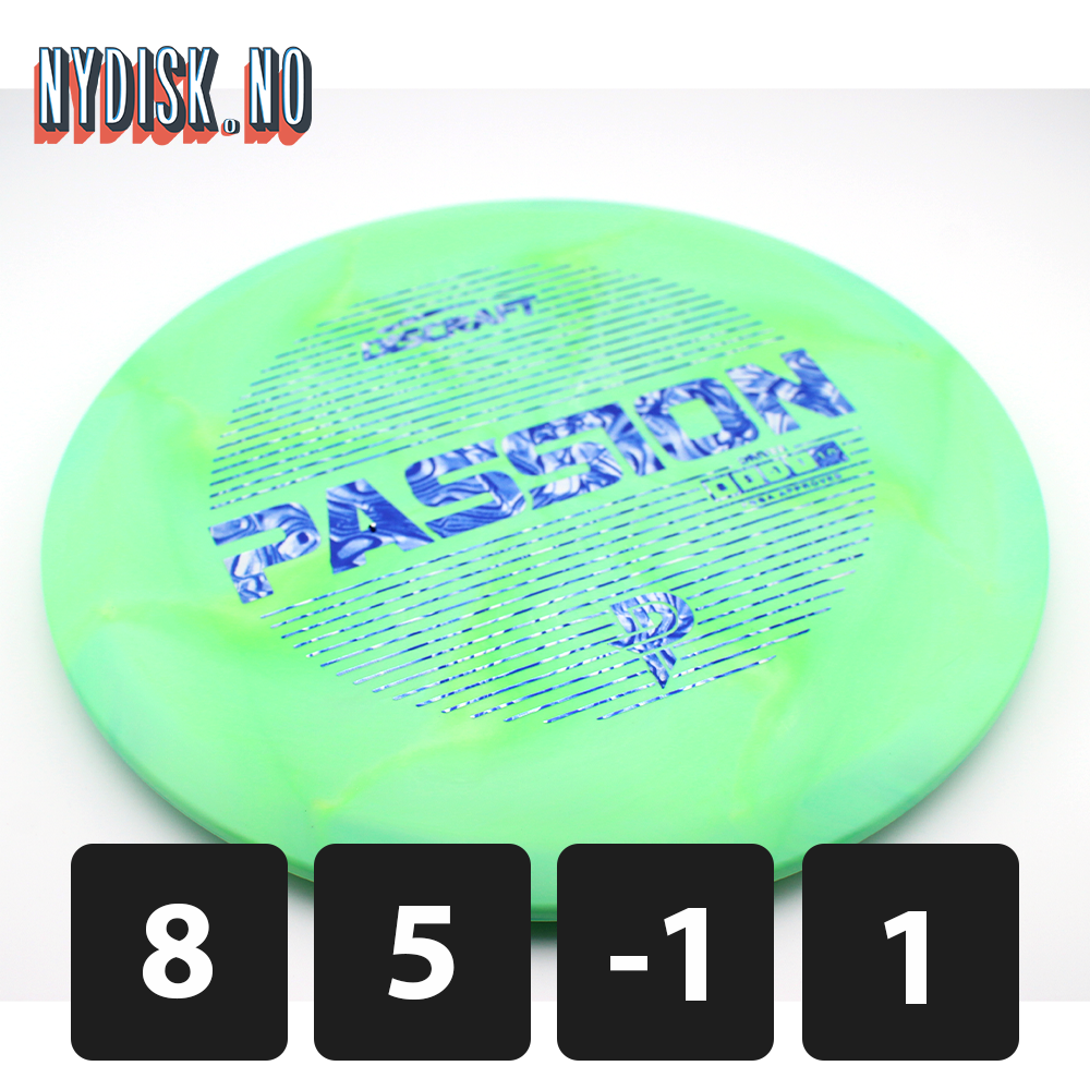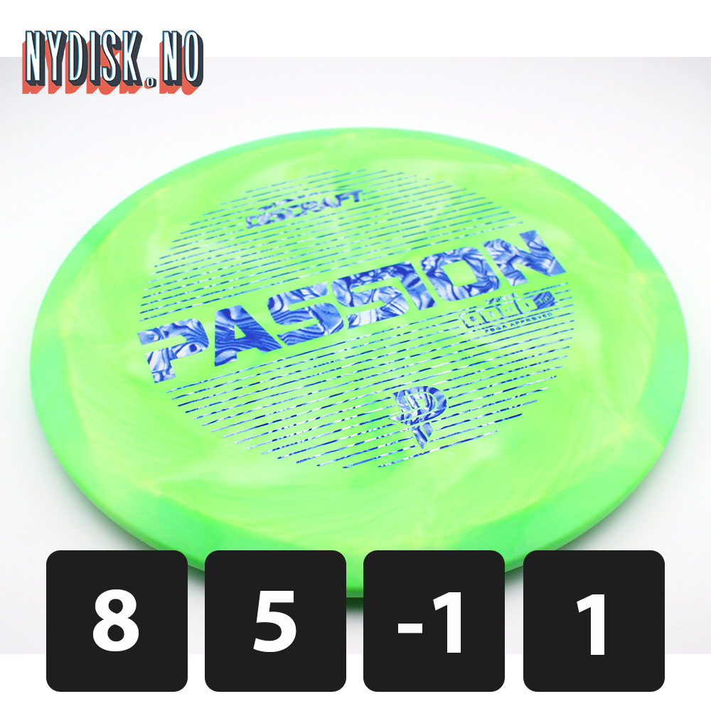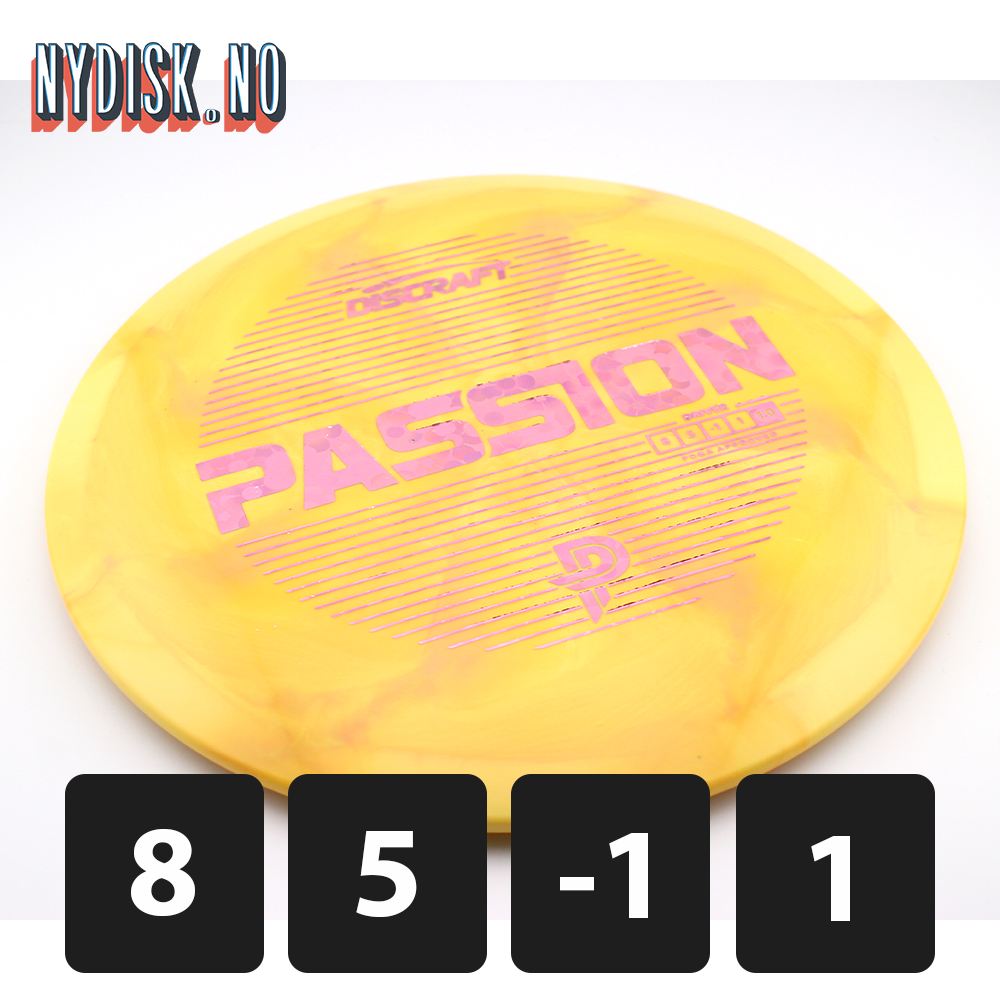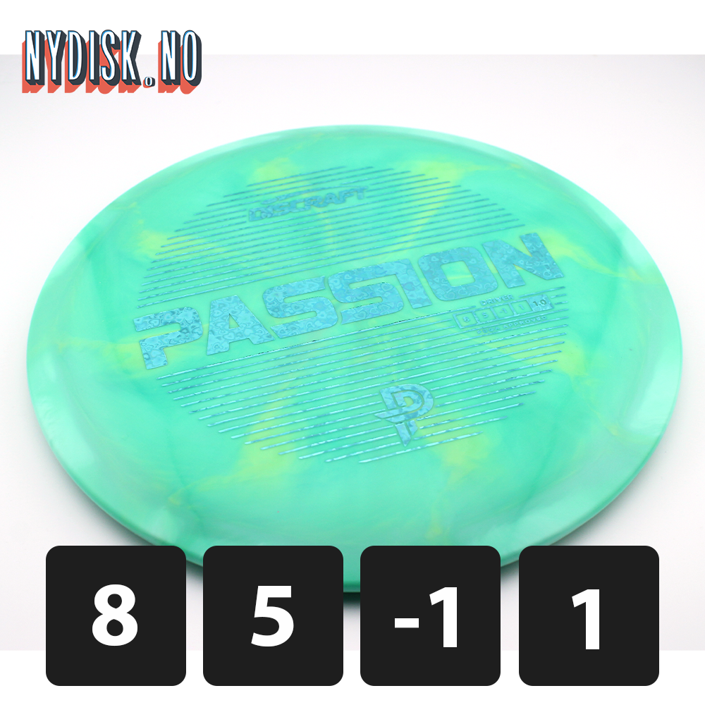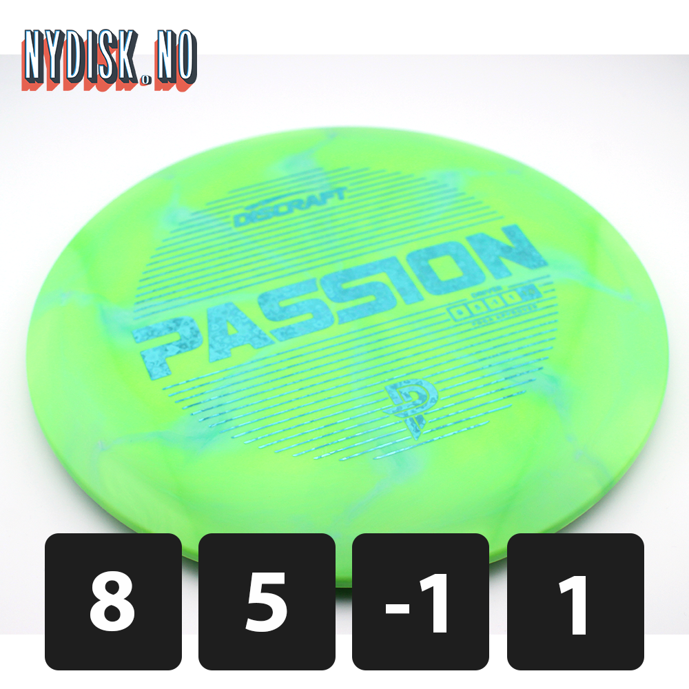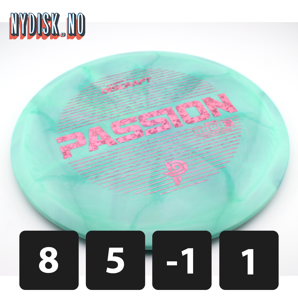 Discraft ESP Passion har raskt blitt en av de mest populære diskene i Norge. Den tilbyr spillere med lavere kastehastighet en helt rett fairway driver som avslutter ferden med en liten fade - den perfekte flighten for trange presisjonskast i skog.