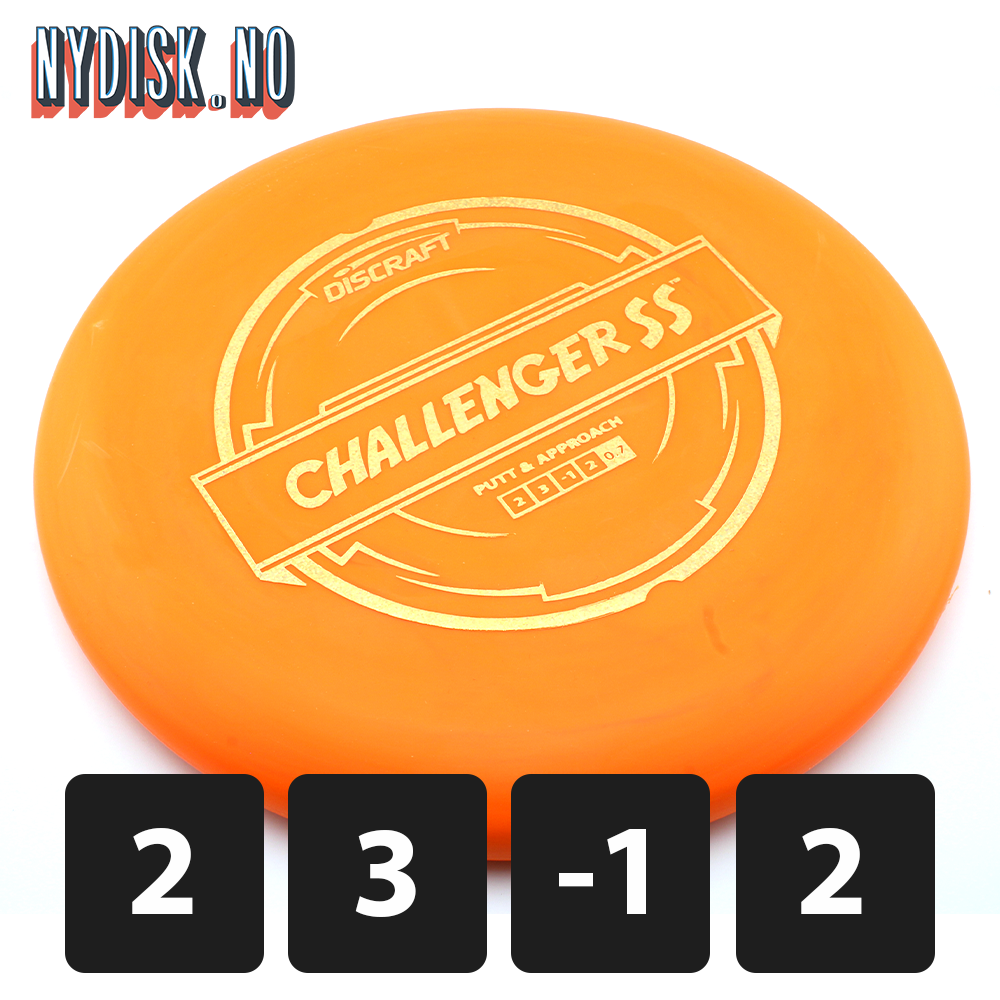 Hard Challenger SS fra DIscraft er en moderat mindre stabil versjon av Challenger. Den fungerer godt både til approach og putting, er relativt dyp, har avrundet rim og ingen bead.