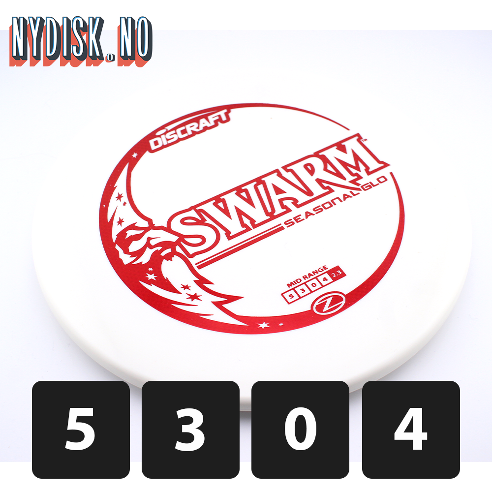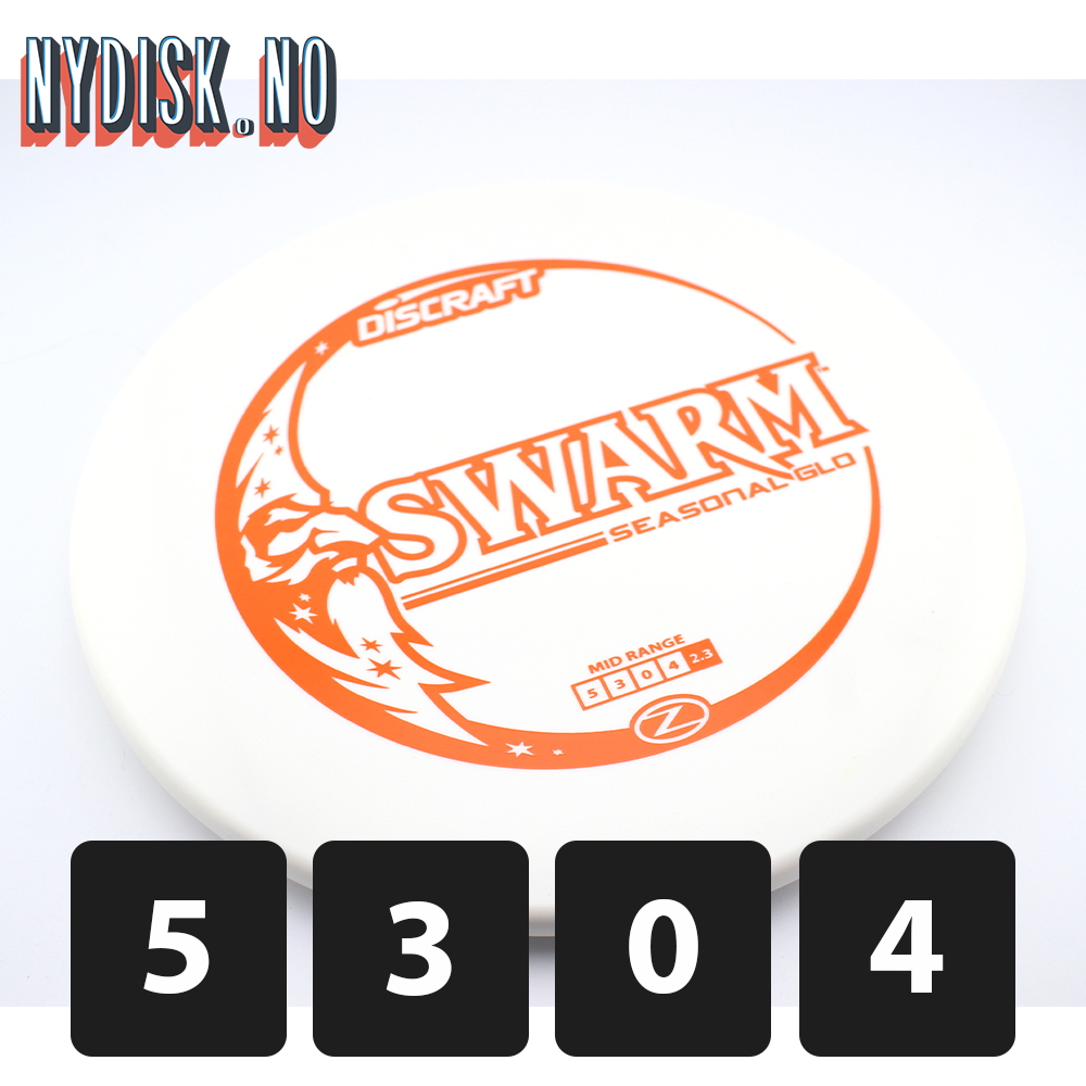 Z Seasonal GLO Swarm er en svært overstabil med lite glide som tåler rikelig med torque. Det gjør den til en bestevenn både på backhand og forehand når du må fade eller kaster i motvind. Disken har ingen bead og har en helt flat profil, noe mange foretrekker i sitt forehandgrep.