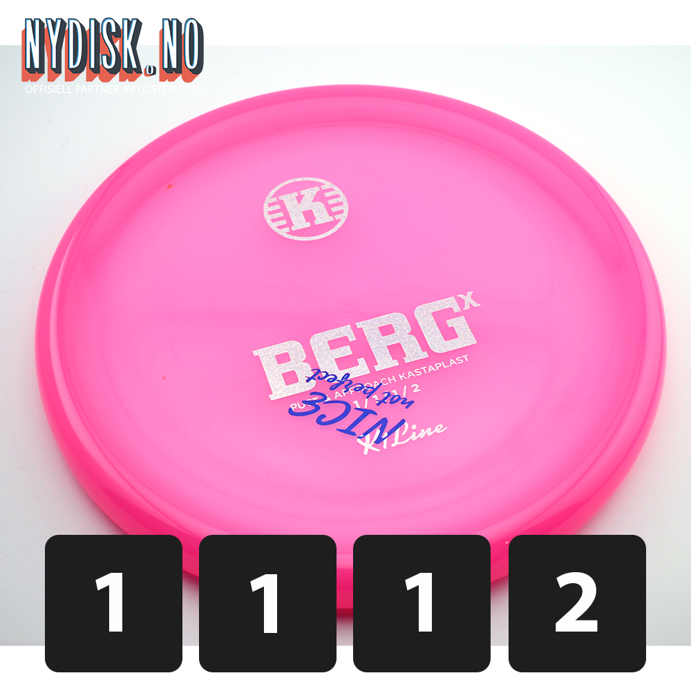 Evnen til å gjøre det samme om igjen er en en verdsatt kvalitet i disc golf. Det gir selvtillit i spillet og Kastaplast Berg X er designet for å hjelpe deg med akkurat det. Berg X har fått både grepet og feelingen til den tradisjonelle Berg-disken, men viser seg annerledes i svært vindfulle forhold og når den kastes med svært høy hastighet. Da vises en overstabilitet du kan stole på uansett vær og vind. Dette gjør også disken bedre egnet til flex forehand og andre kast der du må manipulere vinkler for å treffe det du vil treffe.