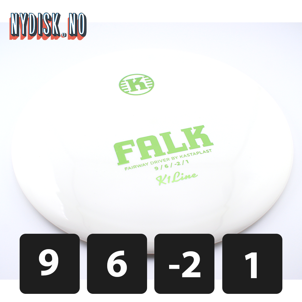 Kastaplast Falk har fått sitt navn etter Falkens egenskaper til å finne målet med den rette kombinasjonen av fart, glide og presisjon. Den brukervennlige fairway driveren passer de aller fleste kastehastigheter og erfaringsnivåer godt. Rimmen er også bare 19mm tykk, noe som gjør den lett å gripe for de fleste hender. Disken er på sitt aller beste når du bruker den til lange, rette kast i medvind, lange anhyzer linjer og hyzer flip drives.