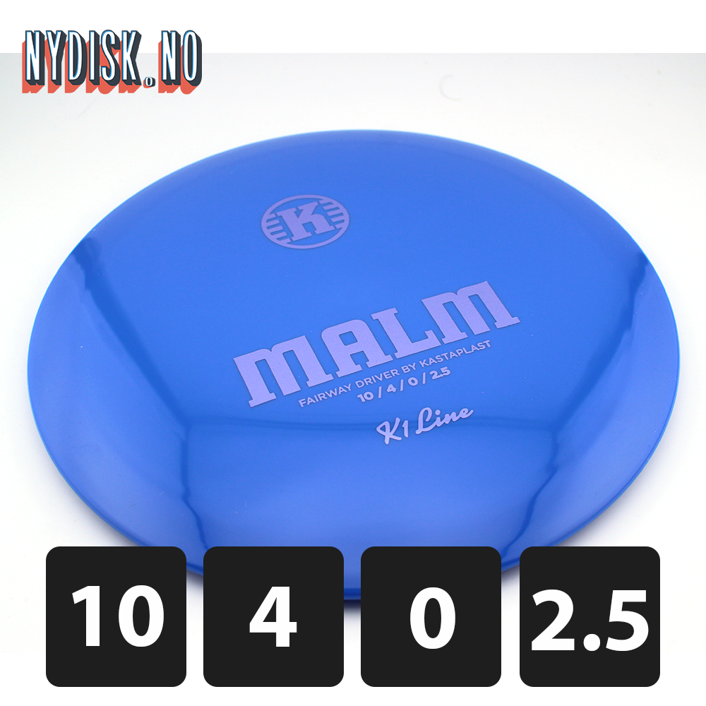 Malm er en ny, overstabil control driver fra Kastaplast. Med 10 i speed tilbyr den et godt grep for de fleste spillere og med 2.5 i fade, kan den gis høye hastigheter uten å miste egenskapene sine. Disken er godt egnet for gode og erfarne spillere.