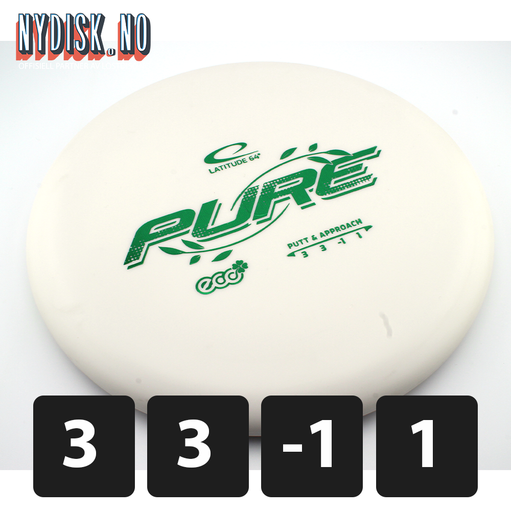 Latitude64 ECO Pure er en putter designet for presisjon. Laget med miljøvennlige materialer, gir den en perfekt balanse mellom grep og holdbarhet. Den ergonomiske følelsen og den rette flighten gjør den til et toppvalg for både nybegynnere og erfarne diskgolfspillere.