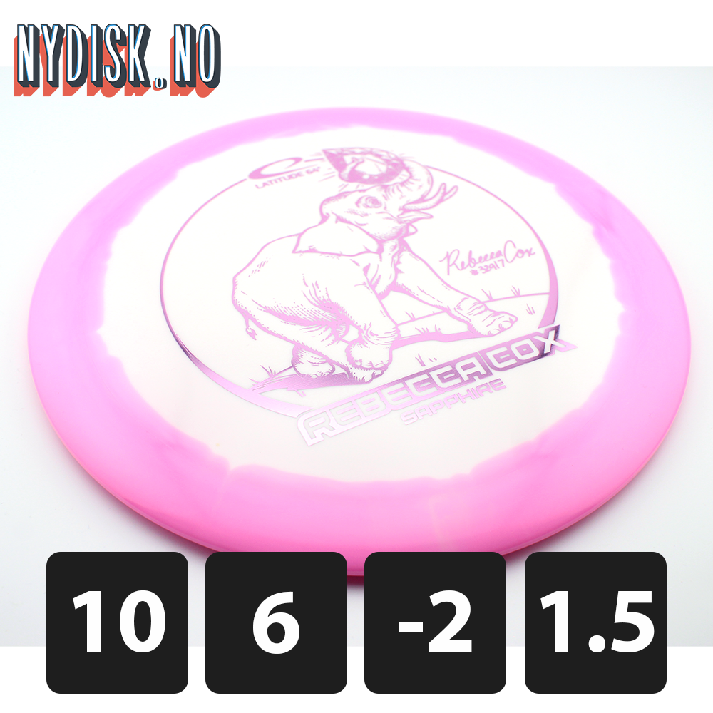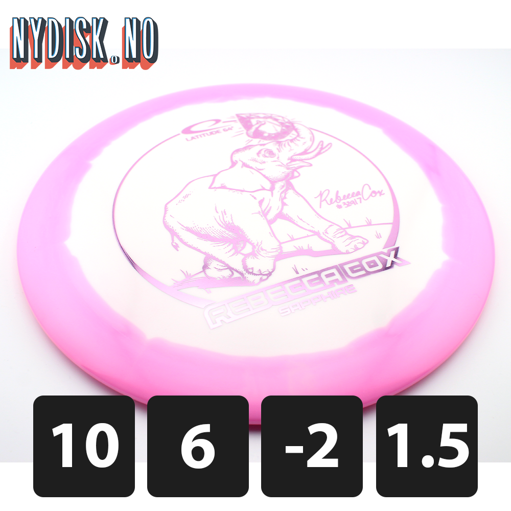 Gold Orbit Sapphire - Rebecca Cox 2024 er en langtflyvende kontrolldriver fra Latitude64 svært godt egnet som distance driver for uerfarne eller spillere med lavere kastehastighet.
