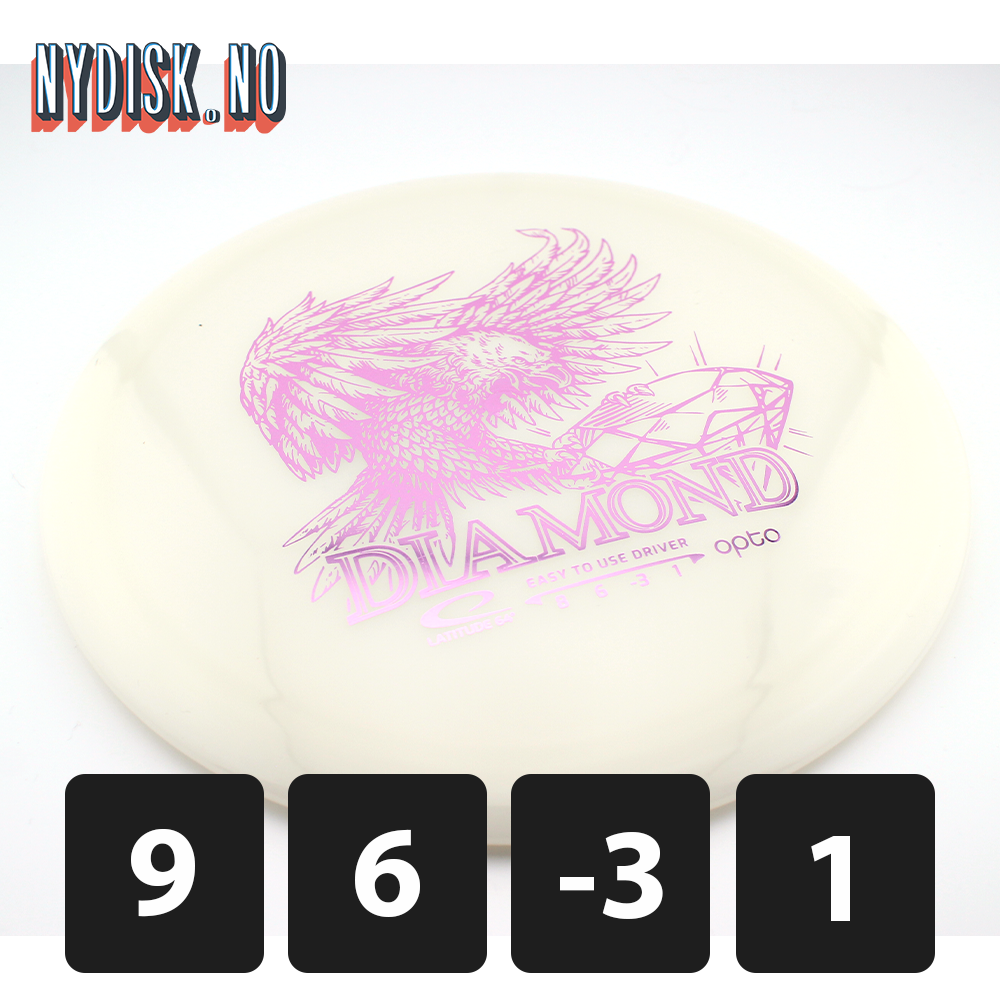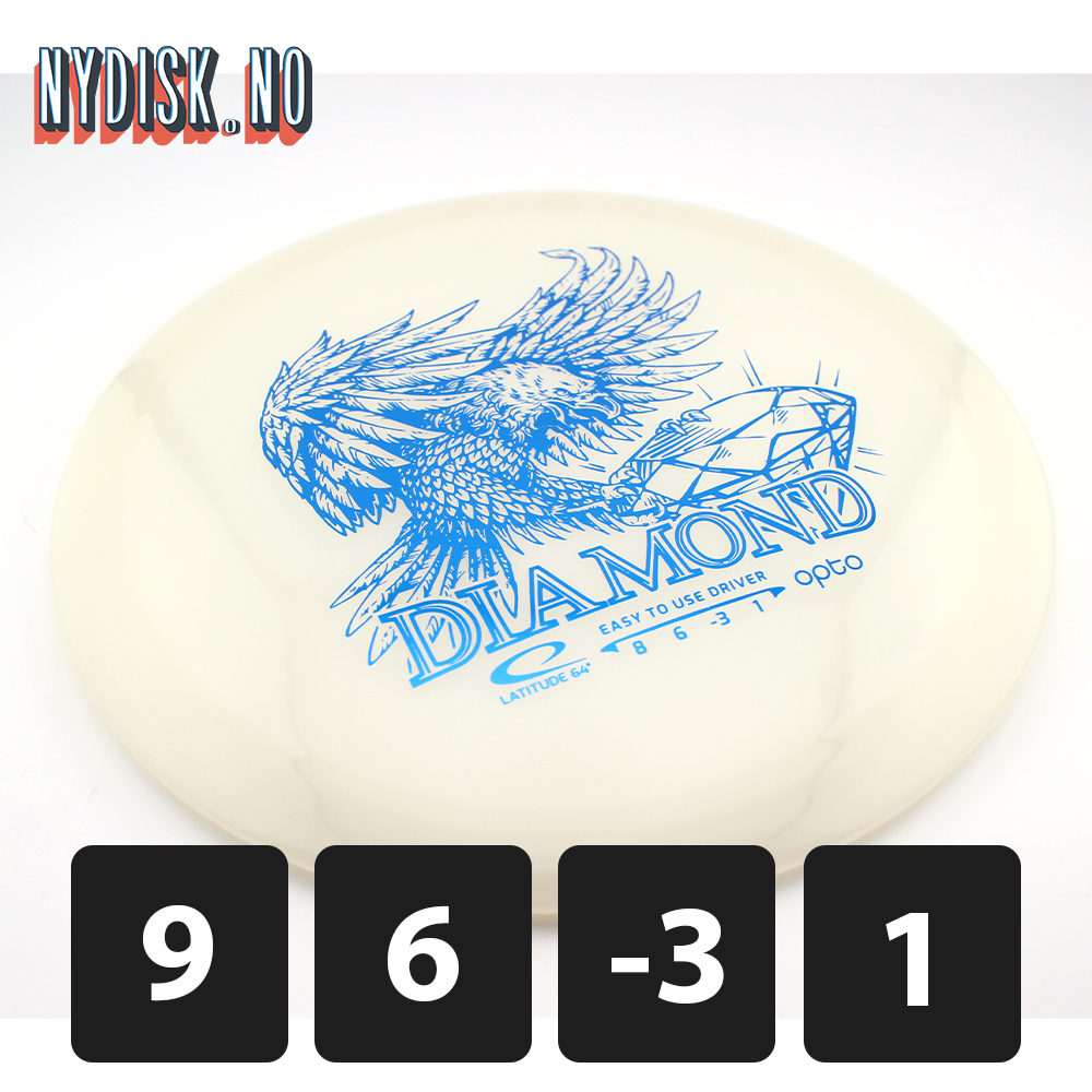 Latitude64 Opto Diamond er en lett og nybegynnervennlig driver. Med Opto-plast opprettholder den flyveegenskapene sine over tid samtidig som den er enkel å kaste for nye spillere. Denne disken gir ekstra distanse uten å ofre kontrollen, noe som gjør den til et utmerket valg for de som lærer å spille diskgolf.