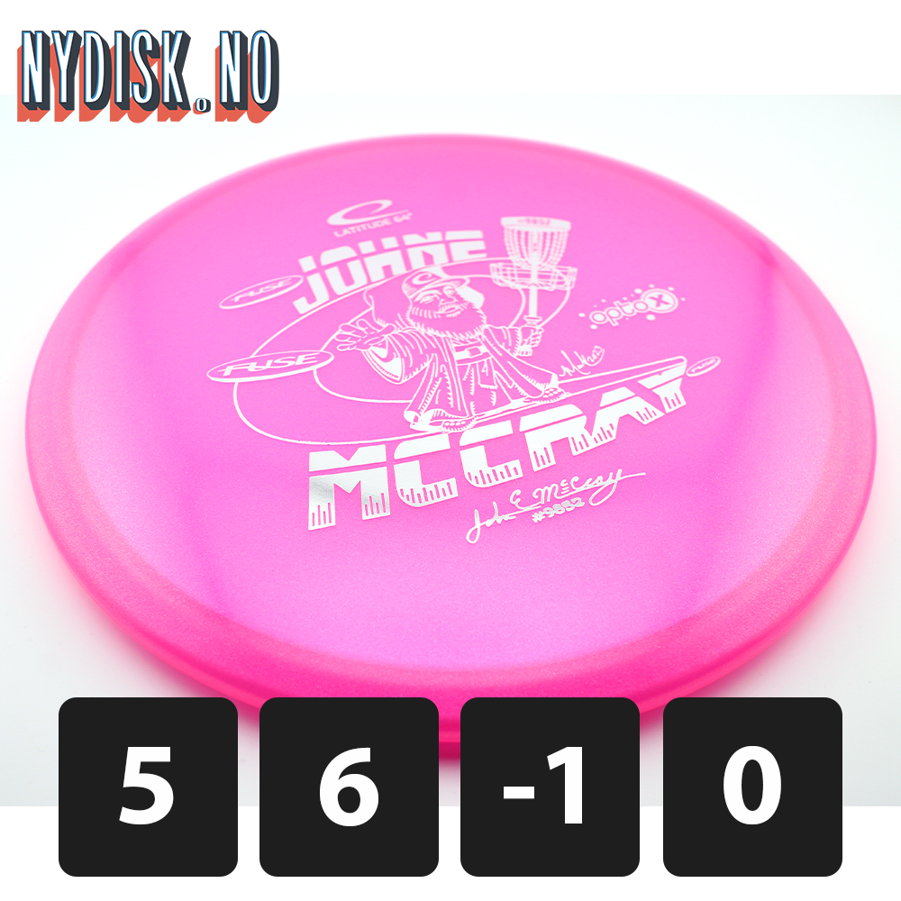 Latitude64 Opto-X Sprakle Fuse - Johne McCray 2024 er en understabil midrange med enorme mengder glide. Det er også Johne McCray sin tour series disk for 2024 sesongen og leveres i en nydelig plastikk.