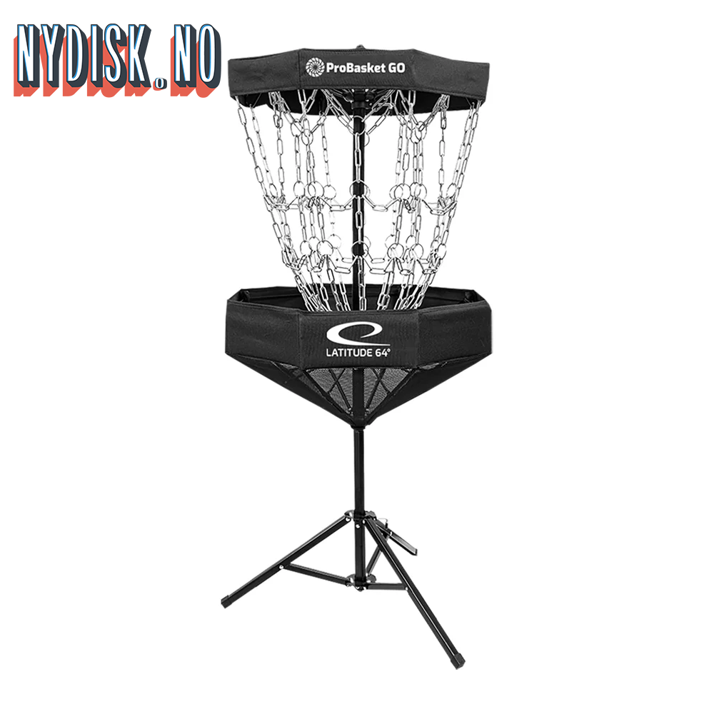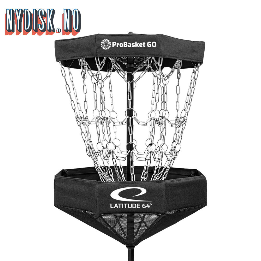 Med den sammenleggbare kurven ProBasket GO fra Latitude64 er det enkelt å skvise inn litt diskgolf både hjemme og på reise. Kurven har en solid midtstolpe, slitesterk tekstiltopp og 16 kjettinger dekket i sink.