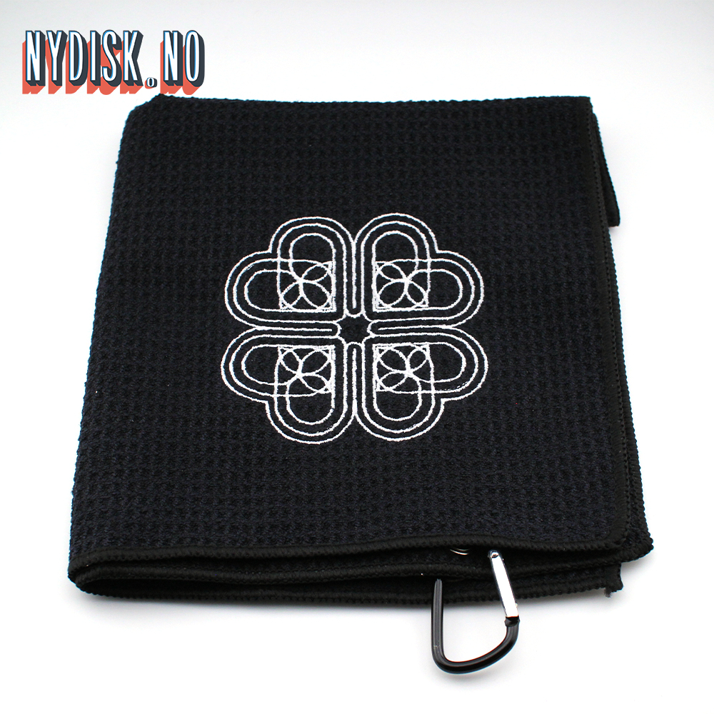 Sort vaffelhåndkle med Lucky Waffle-logo og svært god tørkeevne. Leveres med tre maljerte hull og karabinkrok i størrelsen 40x60cm.