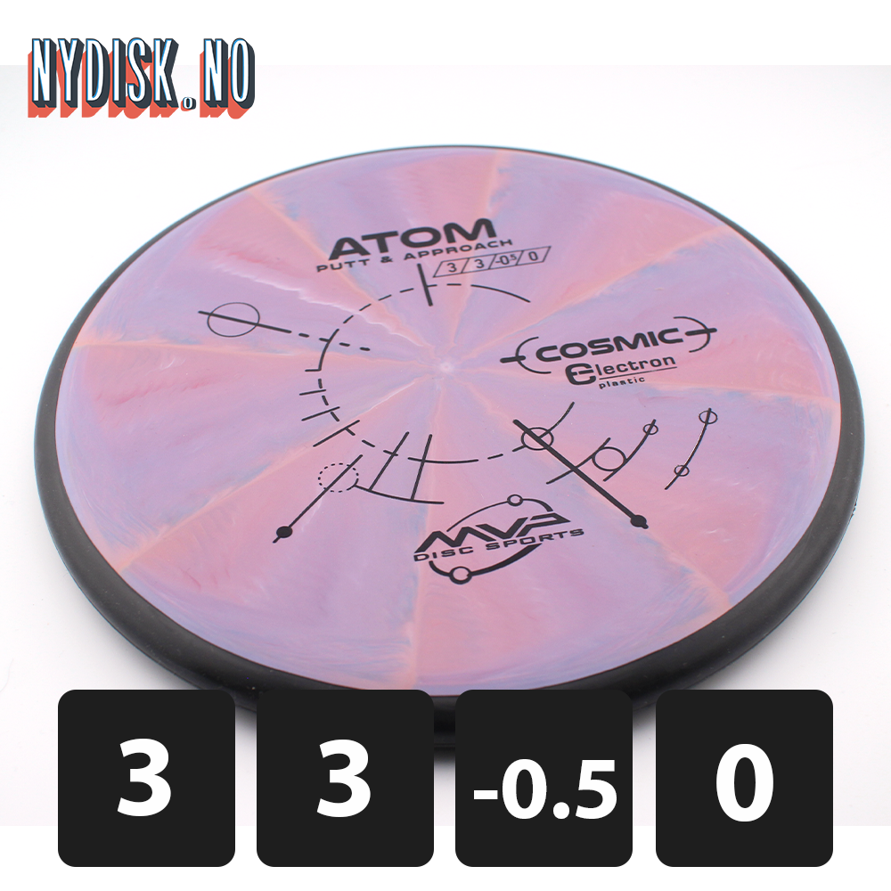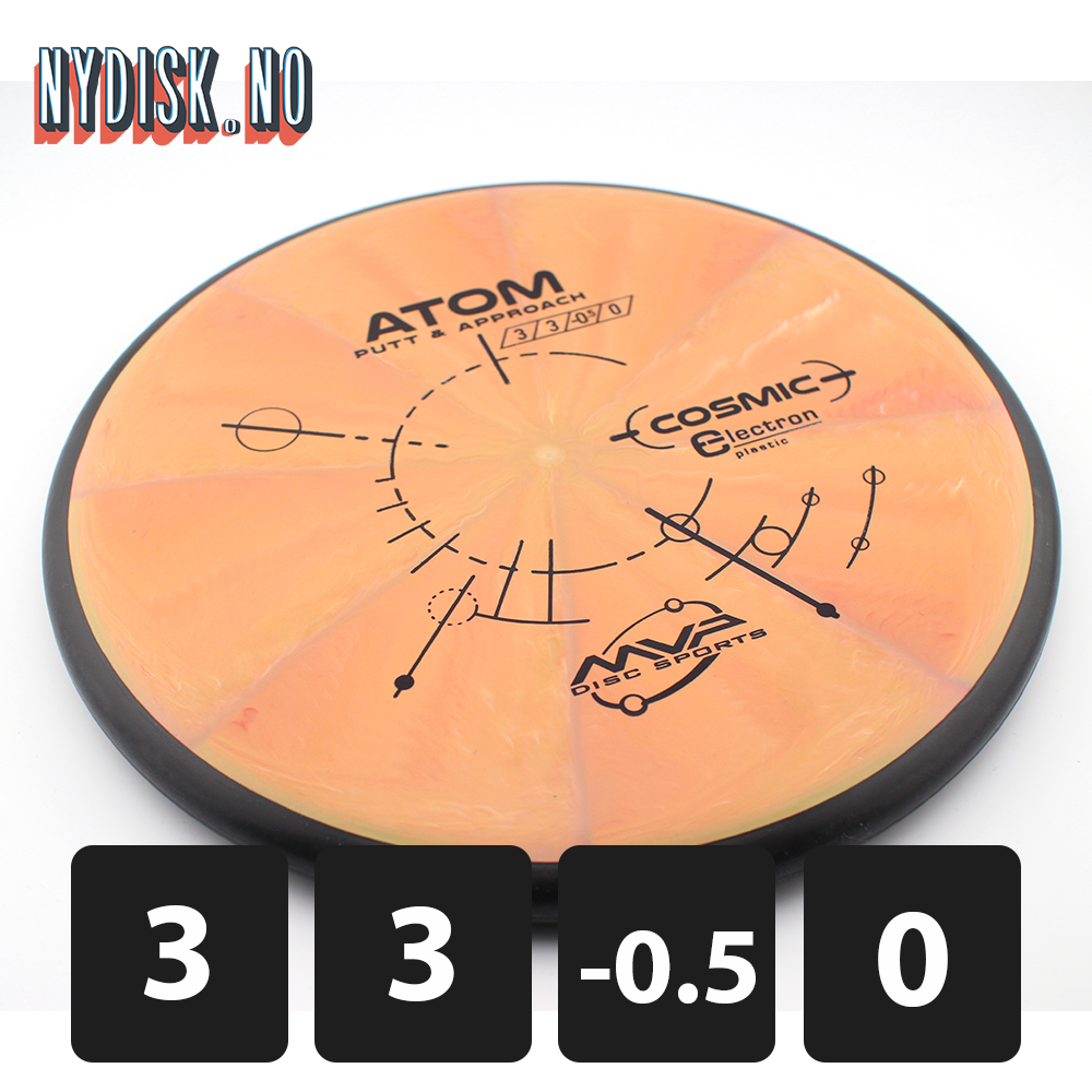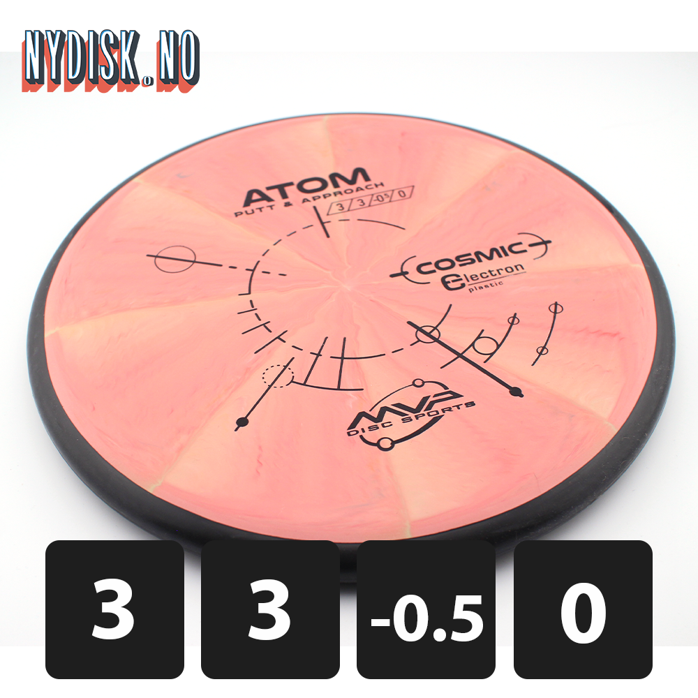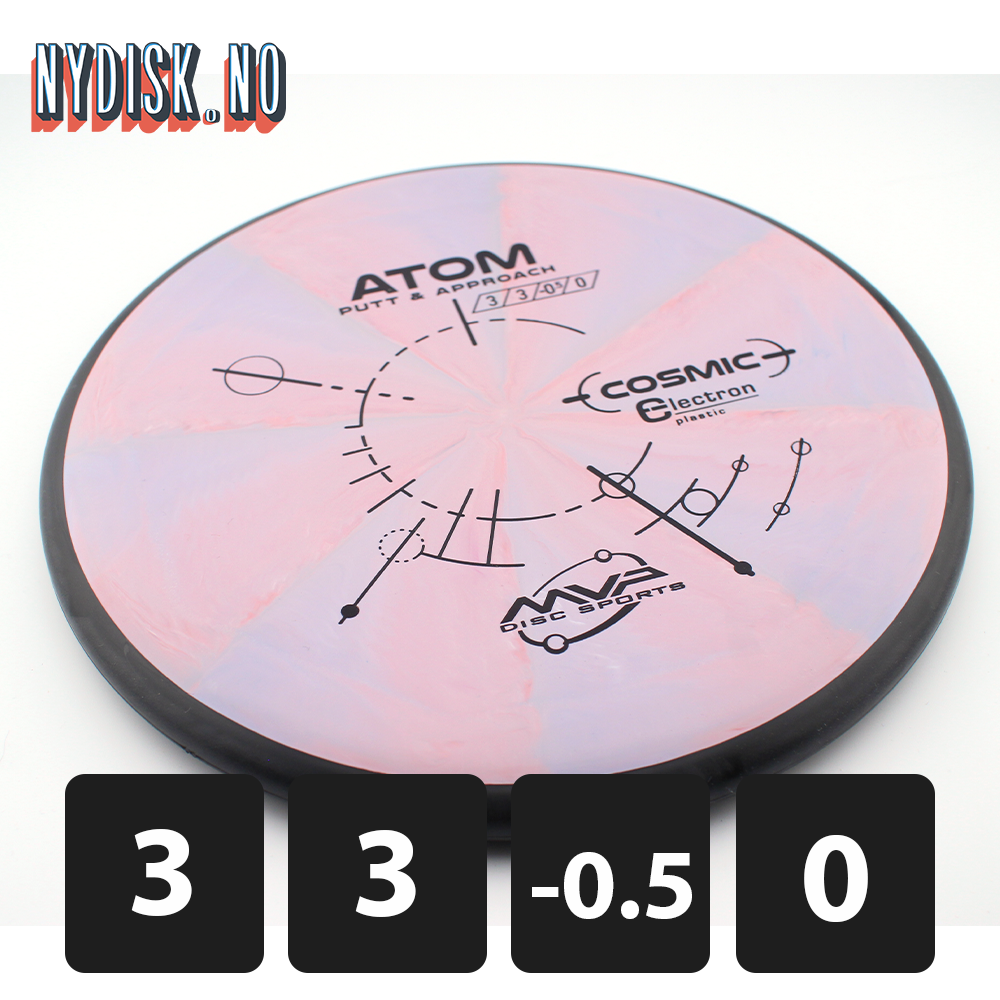 MVP Atom er en rettflyvende kasteputter med stort potensiale fra tee og på lange innspill. Ut av hylla har Atom en nøytral stabilitet med en liten fade mot slutten. I premium GYRO® plastikk vil den nøytrale stabiliteten bevares lenge. I Electron plast vil Atom etterhvert vise mer understabile egenskaper og kan finne sin plass i baggen som en lett understabil putter med stort potensiale for distanse.