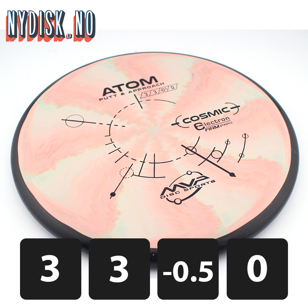 MVP Atom er en rettflyvende kasteputter med stort potensiale fra tee og på lange innspill. Ut av hylla har Atom en nøytral stabilitet med en liten fade mot slutten. I premium GYRO® plastikk vil den nøytrale stabiliteten bevares lenge. I Electron plast vil Atom etterhvert vise mer understabile egenskaper og kan finne sin plass i baggen som en lett understabil putter med stort potensiale for distanse.