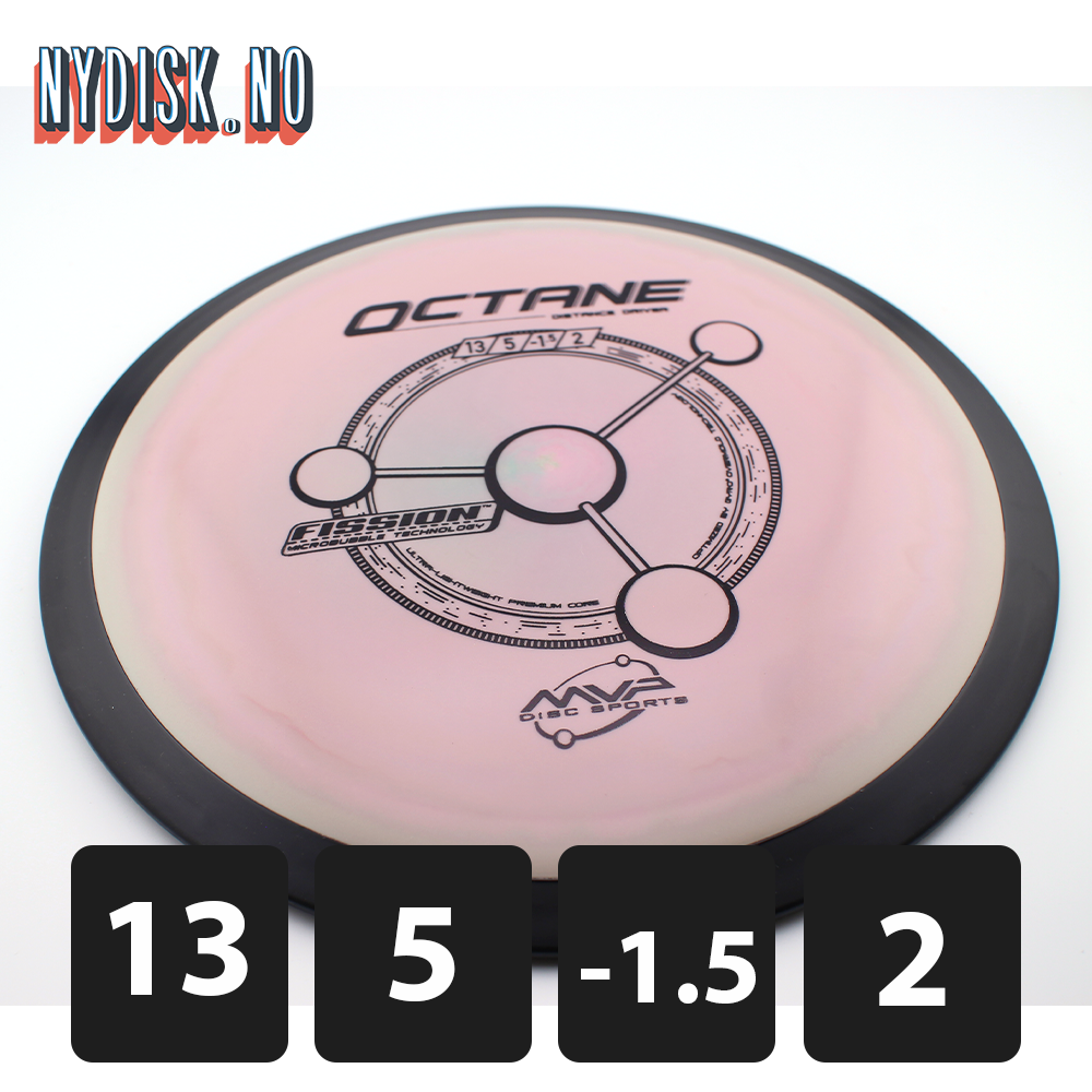 I testing hos MVP, viste Fission® Octane en touch mer turn enn i annen plast – noe som hjalp den til å være kanskje den lengsteflyvende Octane så langt. Med flight nummer på 13 | 5 | -1,5 | 2, kommer Fission® Octane til å gi deg svar på hvor langt du egentlig kan kaste.