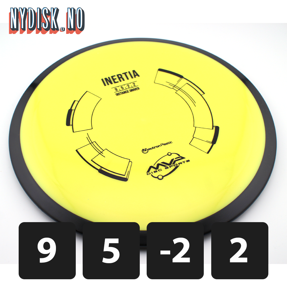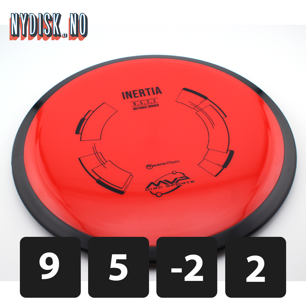Inertia er den første distance driveren til MVP med 20mm rim. Disken har en uovertruffen GYRO™ Push slik at du kan bevare kontrollen på dine distansekast. Inertias understabile profil vil tillate kast med høy hastighet og å oppnå konsistente hyzerflips som vil bære langt og nøyaktig. Den nøytrale flyvningen forlavhastighetskastere vil tillate pålitelige rette distanselinjer med nøyaktighet.