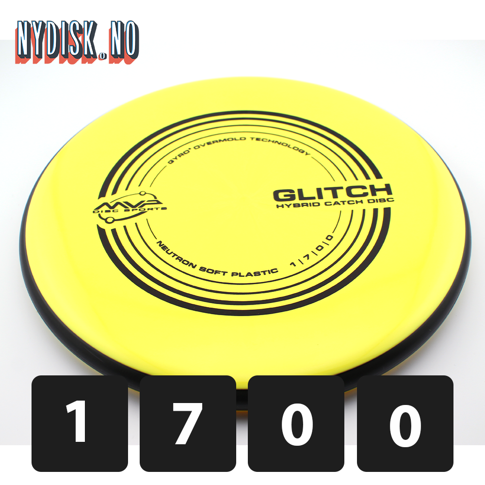 Det siste store eksperimentet fra MVP R&D Lab, Glitch er en hybrid catch-disc designet for å viske ut linjene mellom discgolf og en catch-disc. Glitch har diameteren til en putter og er også PDGA-godkjent, noe som gjør den til det beste fra begge verdener. Neutron Soft plast gjør Glitch lett å fange når du kaster rundt med en venn, men det gjør også Glitch til en fantastisk innspill- eller scrambledisk på grunn av dens tendens til å bli der den lander.