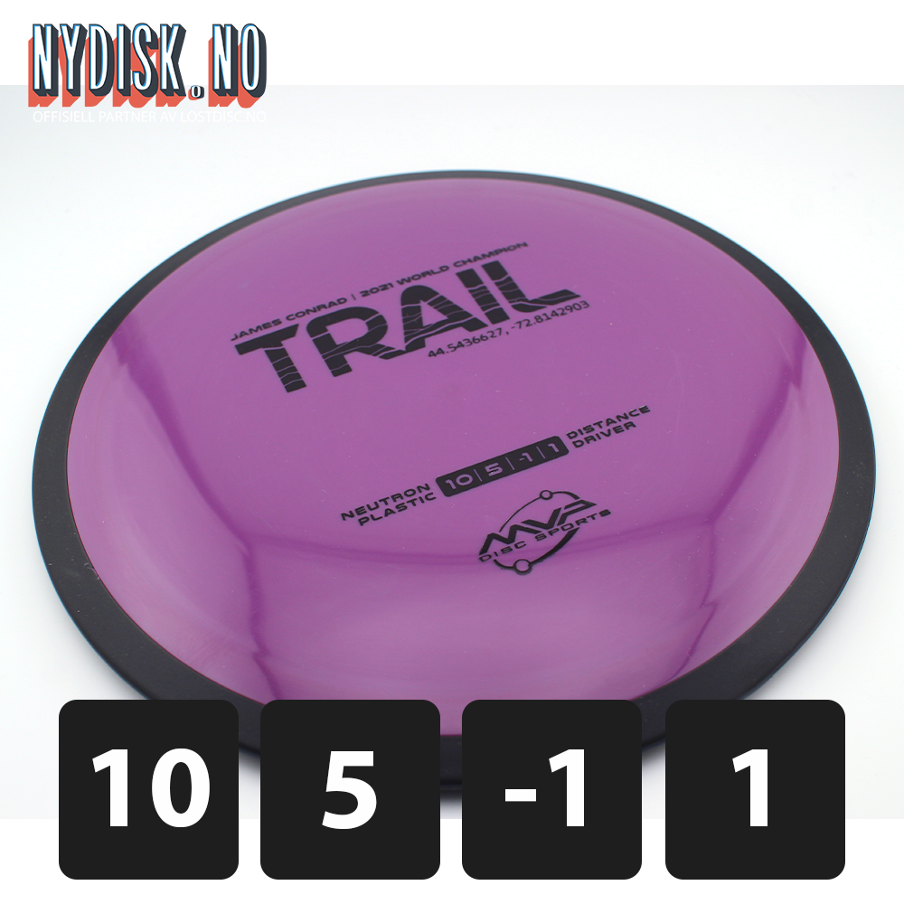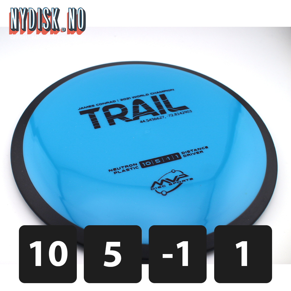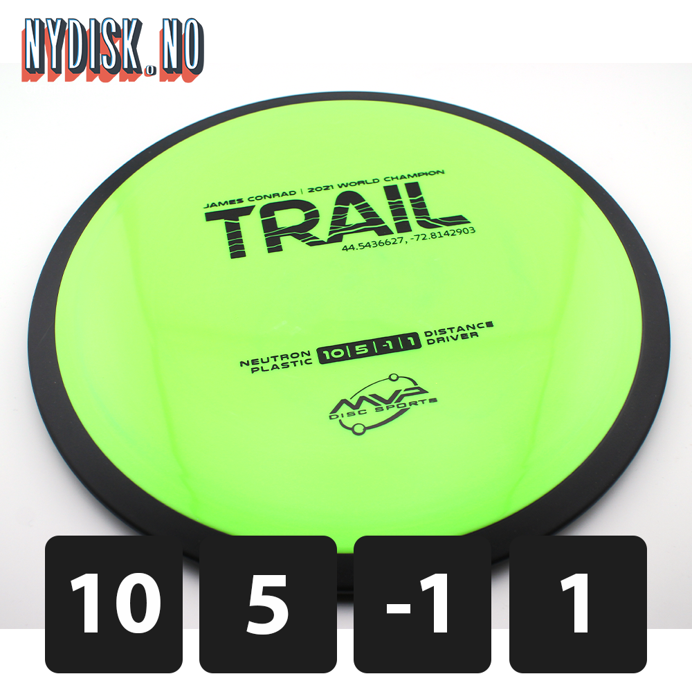 MVP Trail er MVP sin første 10-speed distance driver og med en stabil til understabil flight har den virkelig eksplodert i poplaritet verden over. Rimtykkelse og hastighet er overkommelig for de fleste amatørspillere og flyveegenskapene gjør den svært allsidig. Disken er som skapt for spillere med +/- 100 meter i distanse og de som ønsker en lettkastet, rettflyvende maskin i skogen, men har også sitt bruk for spillere med både kortere og lengre distanse.