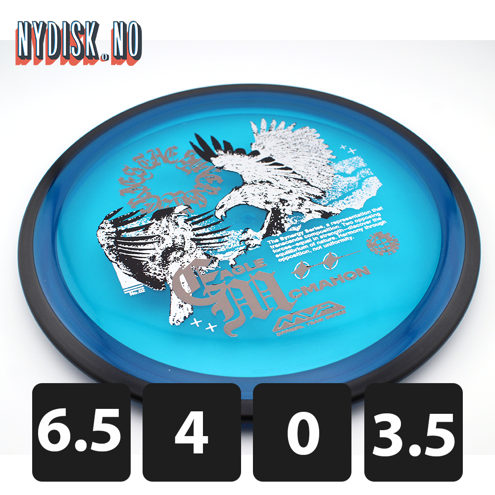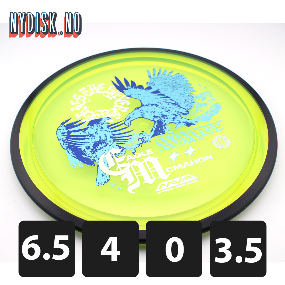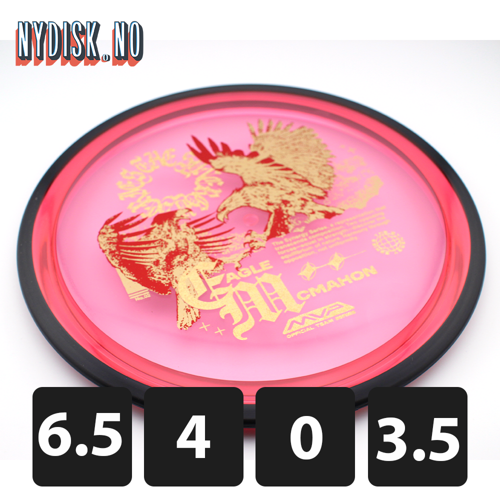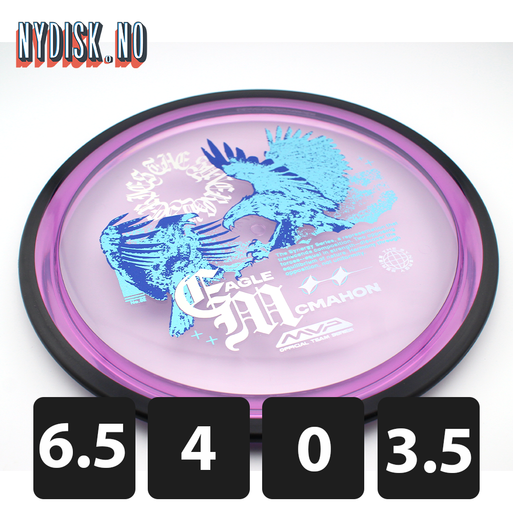 MVP Proton Resistor - Eagle McMahon er en spesialutgave av disken Resistor fra MVP. Fairway driveren er svært overstabil og egner seg for spillere med høy kastehastighet, og spillere som ønsker en kontrollerbar disk som alltid fader. Med en flat profil og overstabilitet, egner disken seg svært godt til både forehand og backhand.