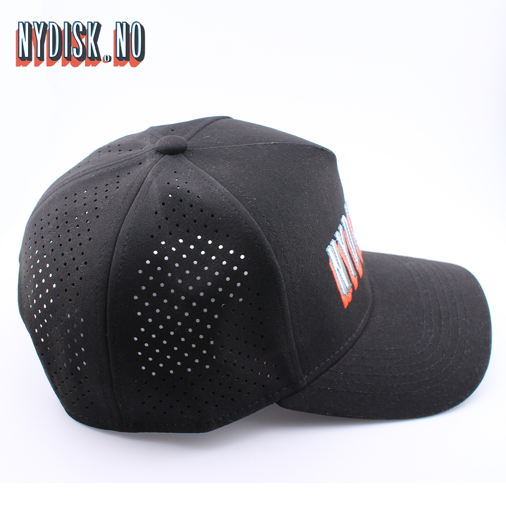 NyDisk caps er en vannavvisende snapback caps med svært god lufting. De er laget av polyester med svettebånd laget av 100% bomull og tilpasset voksne. Logoen er brodert.