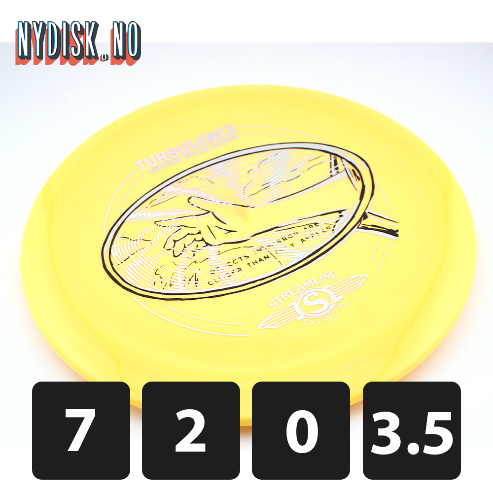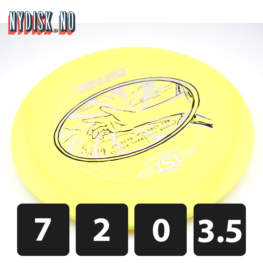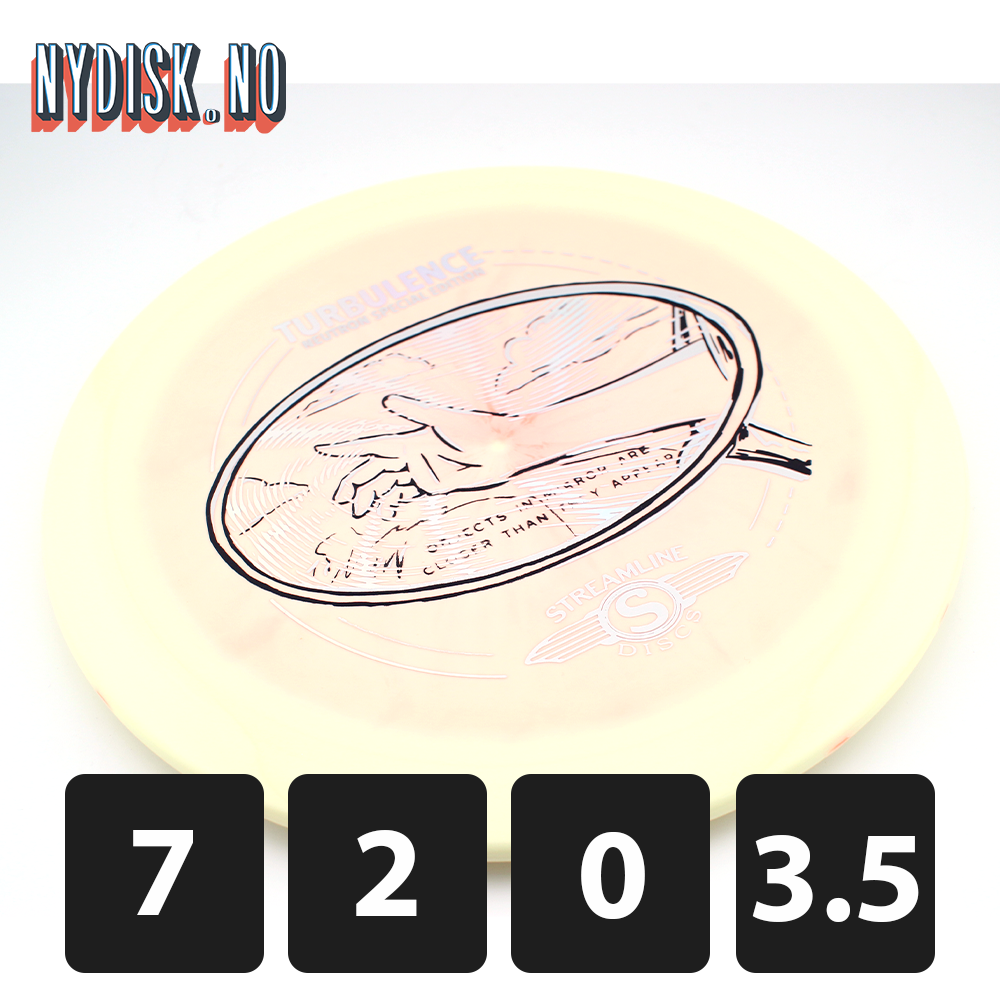 Med flightnumrene 7 | 2 | 0 | 3.5 er denne discen det nyeste ideen fra MVPs FoU-avdeling. Hva om du kunne ta den reduserte gliden og komforten som den konkave toppen til Range gir, men overføre det til en fairway-driver? Resultatet av den vanvittige vitenskapen er her i Turbulence! Turbulence er designet med en målrettet konkav flightplate, og føles fantastisk i hånden – noe som resulterer i ekstremt rene og momentbestandige release for både forehand- og backhand-kast. Det unike designet fører også til mindre glide, økt nesevinkeltilgivelse for spike-hyzere og en dempet skip – noe som resulterer i en ekstremt komfortabel fairway-driver som utmerker seg i alle aspekter av kontrollerte fairway-drivertyper.