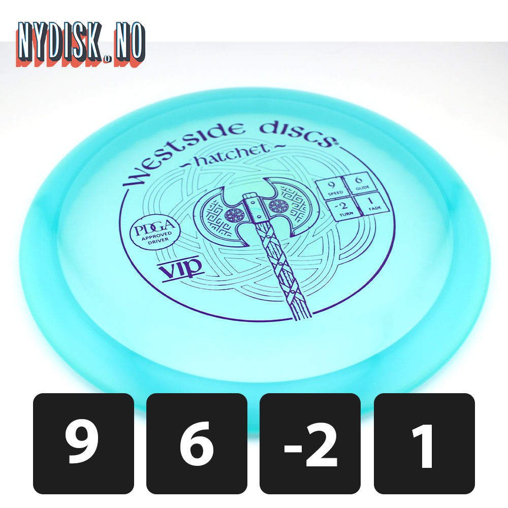 VIP Hatchet fra Westside Discs er en "Glide-maskin" med understabile egenskaper, perfekt for kast som går fra hyzer til flatt og videre på en drift. Ved rett vinkel og hastighet kan dette være en disk for maksimal lengde på rette linjer.